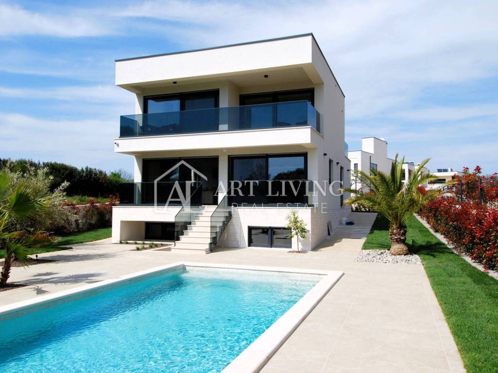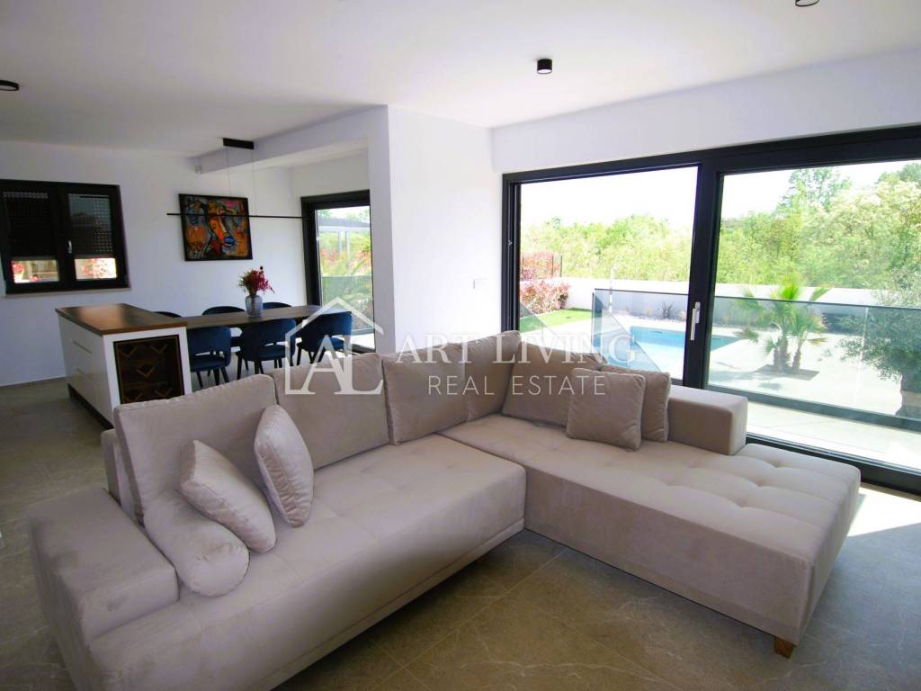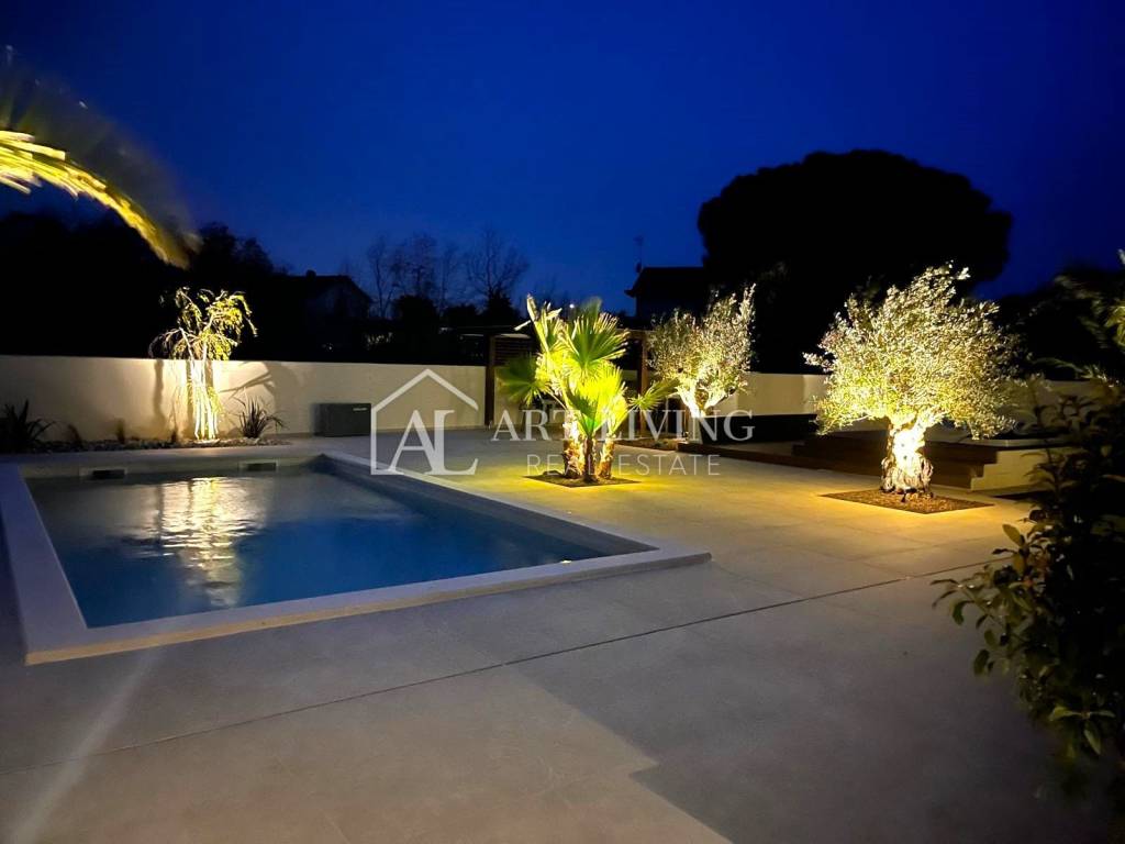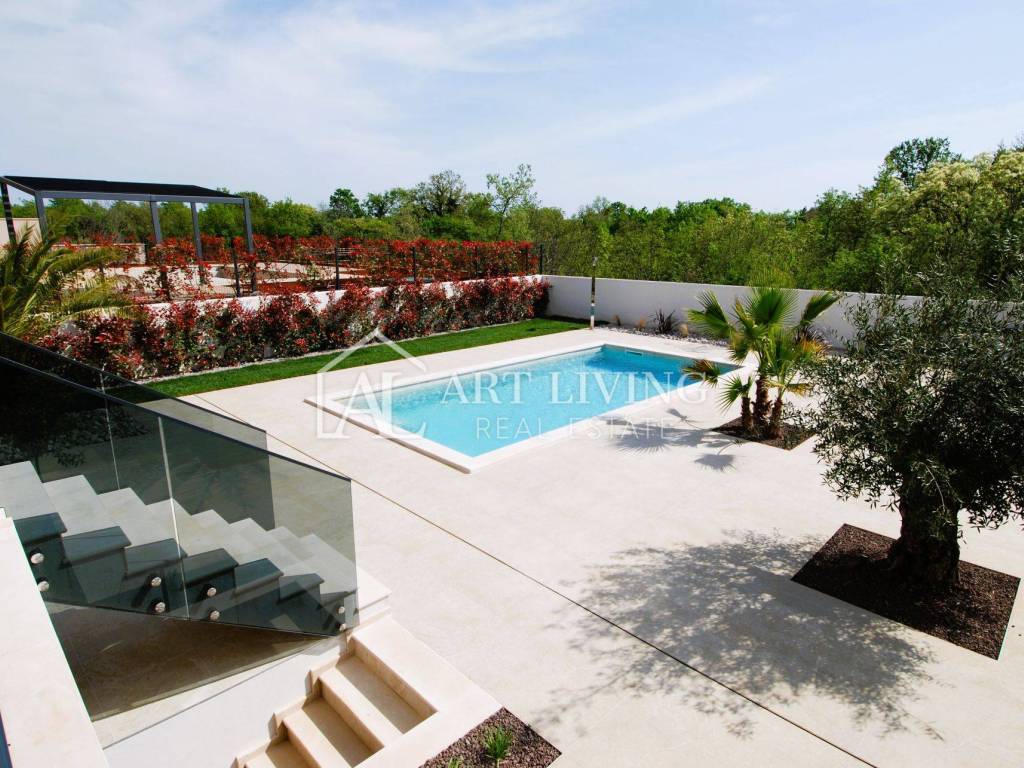 For sale is a luxury villa with a swimming pool in Poreč, only 1500 meters from the sea. This modern villa with a total area of 218 m2 is spread over 3 floors and is fully equipped with stylish furniture with special attention to quality and details.