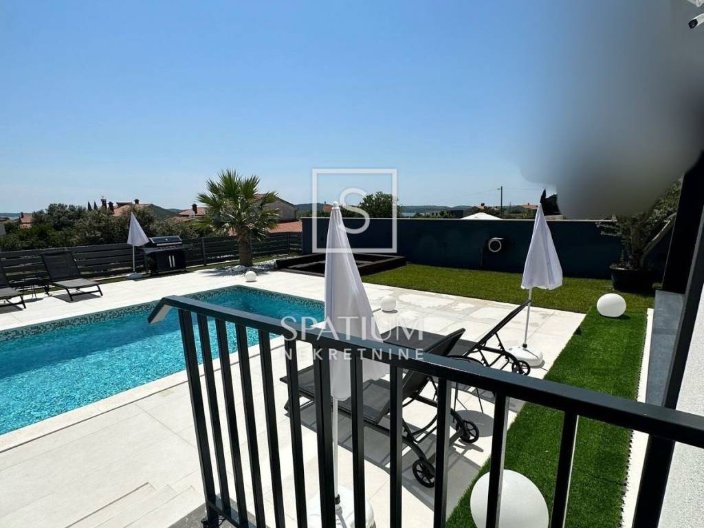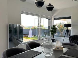 The first floor offers additional comfort and privacy and consists of three bedrooms, two bathrooms (one of which is equipped with a bathtub) and another living room with access to a spacious terrace. The terrace offers an impressive panoramic view of the sea and islands, ideal for relaxing and enjoying sunsets.