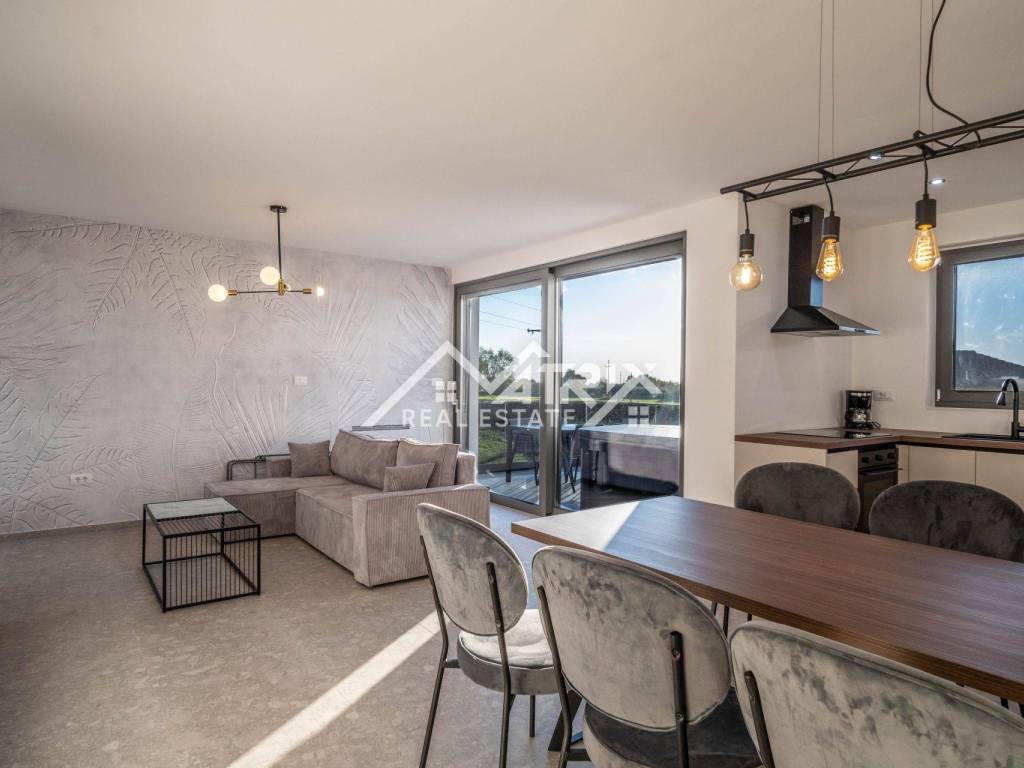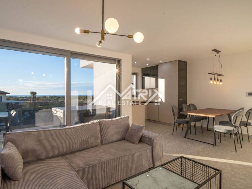 This newly built apartment is the perfect blend of luxury and comfort, spanning 96.56 square meters and located on the upper floor of a modern residential building with only four apartments. Its open-plan living room, kitchen, and dining area create an ideal space for entertaining and relaxing with your loved ones.
