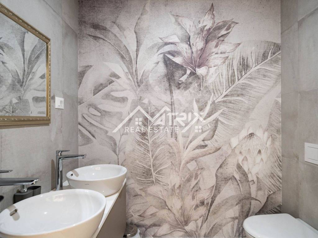The apartment is fully modernly equipped and boasts three spacious and elegantly designed bedrooms. Two bedrooms share a comfortable bathroom, while the third offers added privacy with its en-suite bathroom. Additionally, the apartment includes a guest toilet, a practical hallway, and a large entry hall.