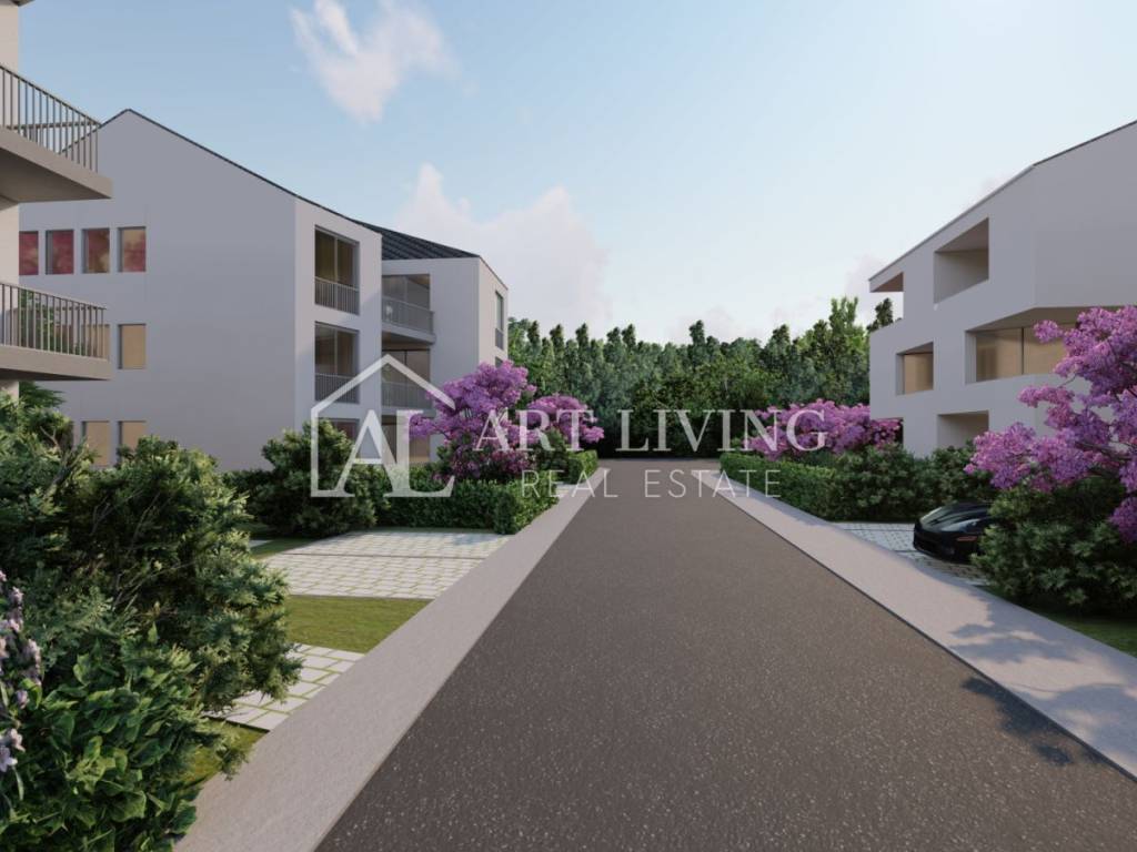 A modern apartment in a new building is for sale in an attractive location 300 m from the sea and beaches, only 3.5 km from the town of Umag, 2 km from the golf course and 9 km from the border crossing with Slovenia.