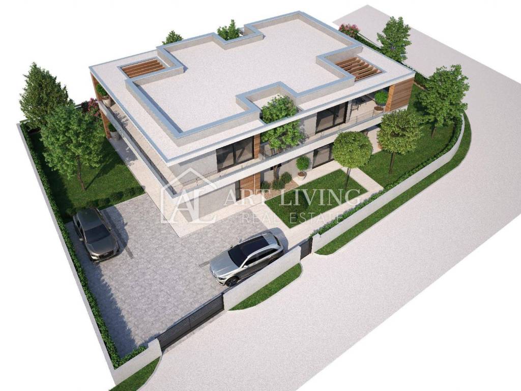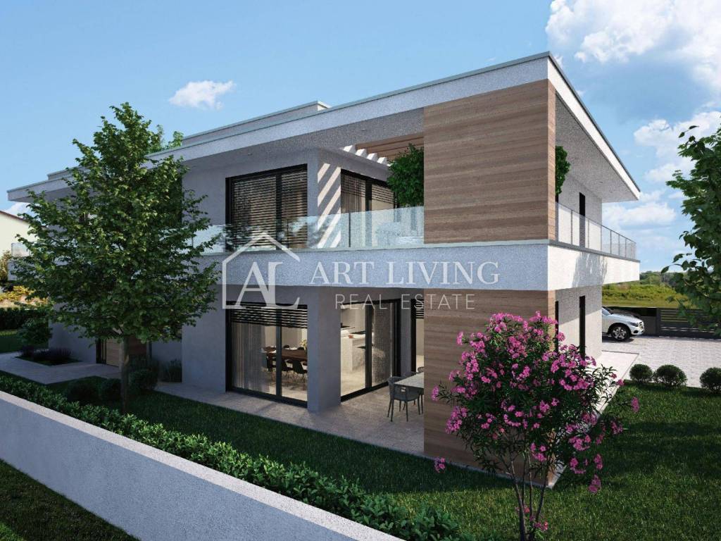 For sale: a modern semi-detached house, located in a quiet and beautiful area just a few minutes' walk from the center of Umag and only 500 meters from the sea and well-maintained beaches.