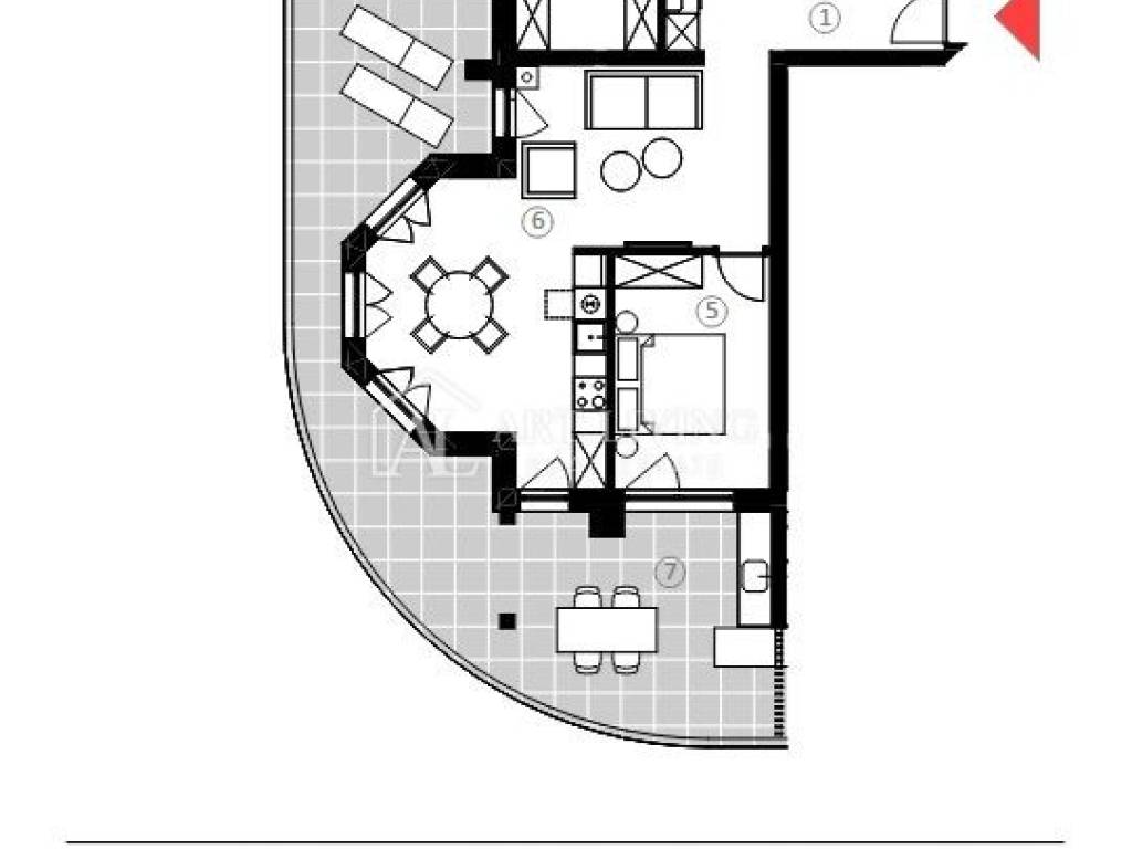 The apartment with a net usable area of 75.24 m2 is located on the second floor and consists of an entrance hall, a living room with an open-plan kitchen and dining area, 2 bedrooms, a bathroom and a toilet. The living room opens onto a spacious covered terrace of 57.50 m2 with a built-in summer kitchen.