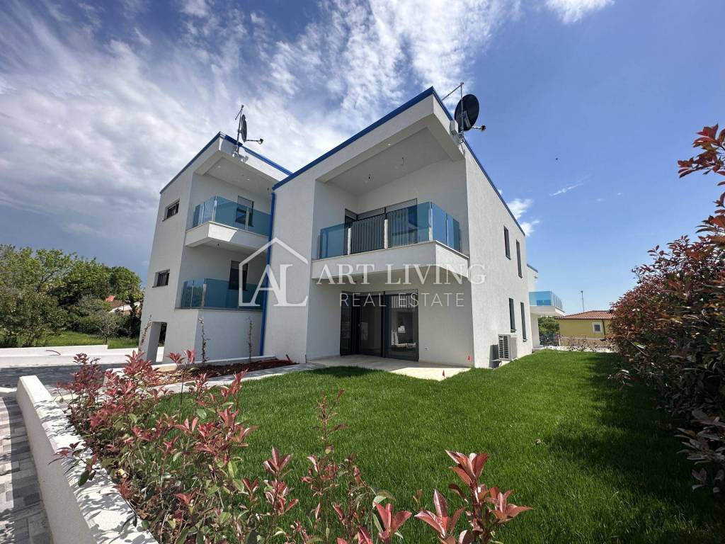 The apartment is located on the first floor of a modern building with a total of 4 units. The total area is 66 m2, of which the net living space is 45 m2.
