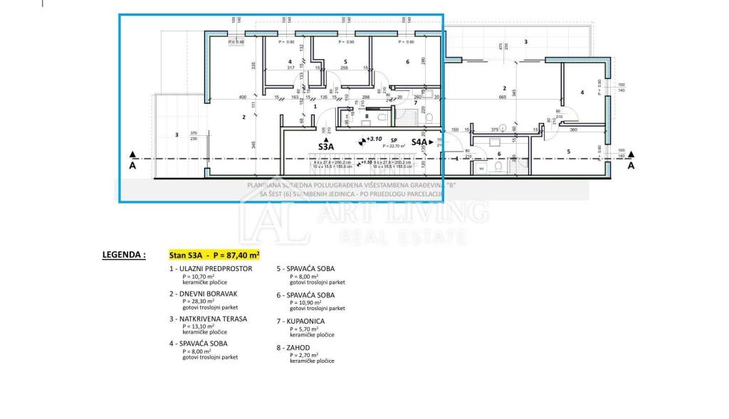 In an attractive location in Istria, near the town of Umag and only 400 meters from the first beaches, is located this modern, well-built building with only 12 residential units. In a quiet environment, ideal for living or vacation, is located apartment S3A on the 1st floor, with a total area of 87.40 m².