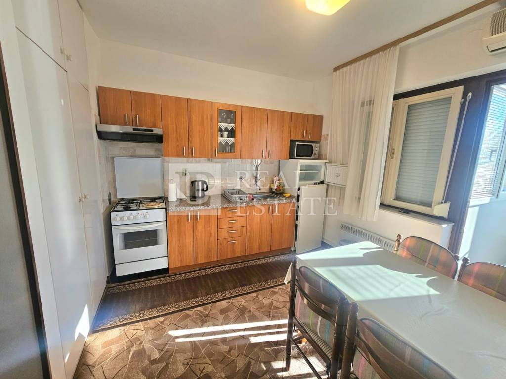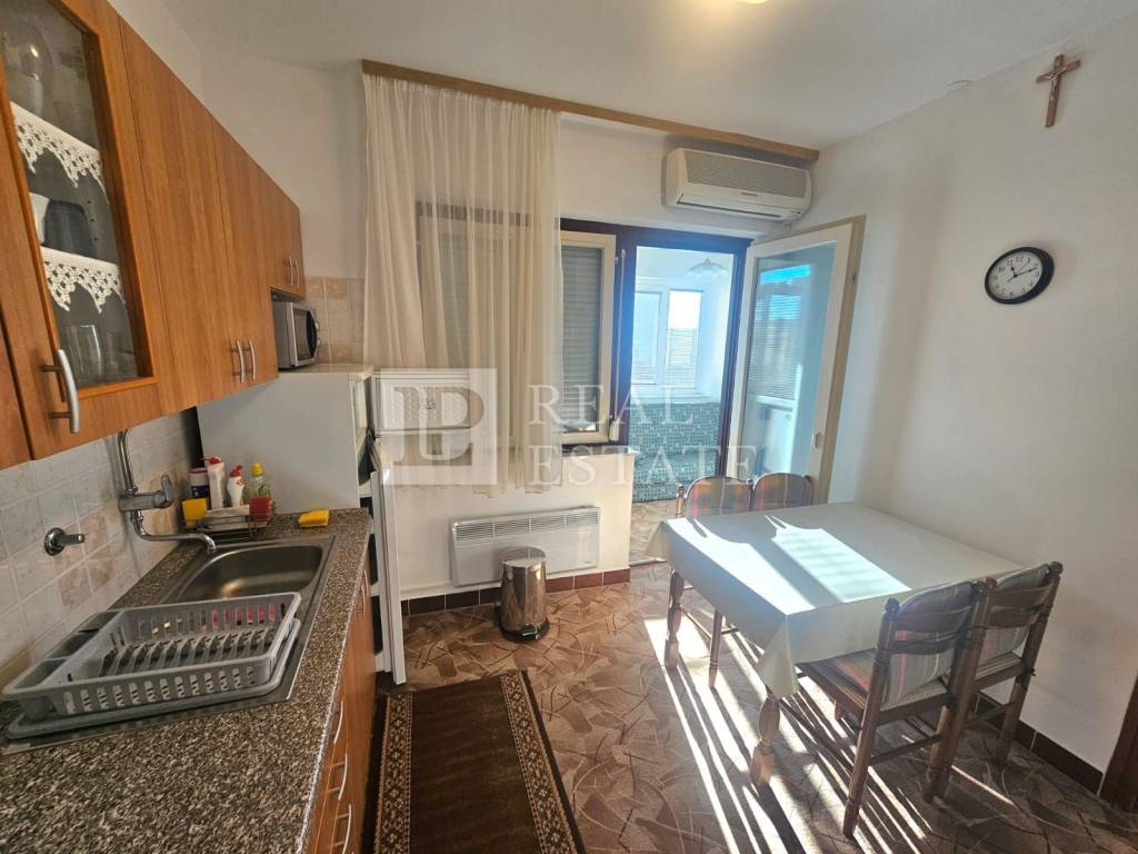 We are selling an apartment on the second floor of a residential building located in a fantastic location, just a few steps from numerous amenities such as a shop, school, kindergarten, restaurant, etc., and only 200 meters from the sea.