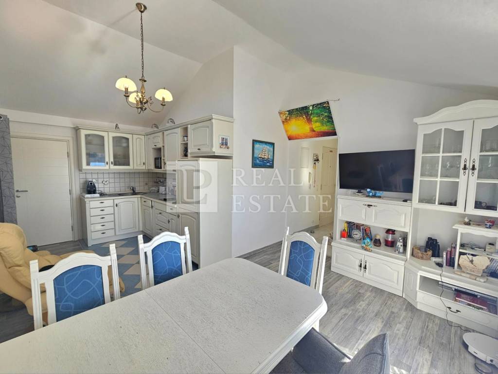A comfortable apartment of 63 m2 consists of a hallway, kitchen with dining area and living room, two bedrooms, bathroom, toilet and a terrace with an open view of the sea.