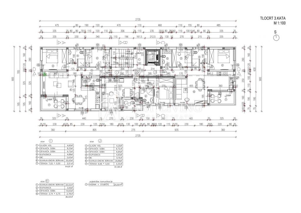Apartment I is located on the third floor of the building and has a total area of 64.81 m².