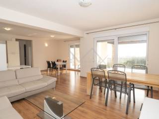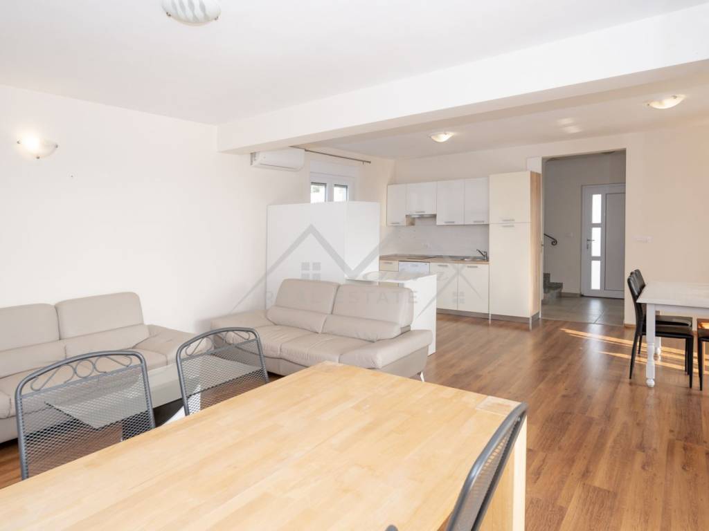 When you enter the ground floor, you will be greeted by an open plan living room, dining room and kitchen, where you can relax and entertain in style. The spacious living room has large glass doors leading to the magnificent terrace, providing the perfect indoor-outdoor living experience. The kitchen is fully equipped, which makes cooking a pleasure. And for added comfort, there is also a beautiful bathroom on the ground floor.
