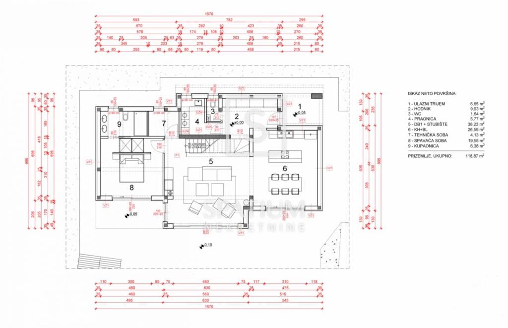 The bedrooms have parquet flooring, while the rest of the villa is covered with premium ceramic tiles. For year-round comfort, electric underfloor heating has been installed. A heat pump and aluminum joinery contribute to the villa’s high energy efficiency.