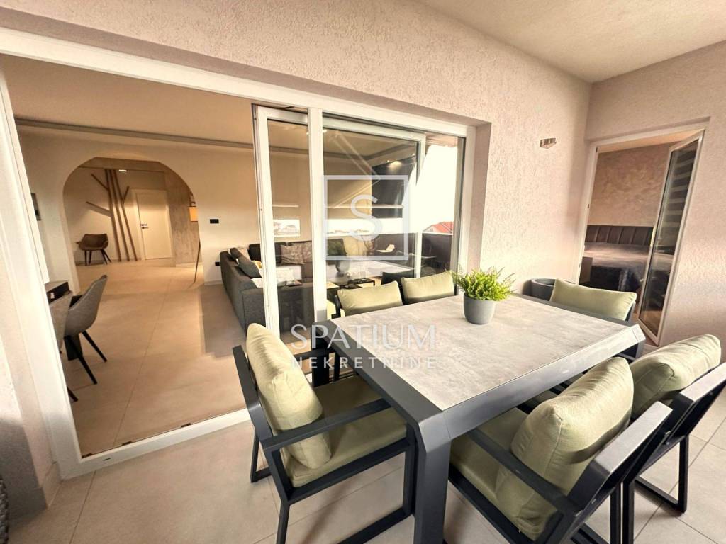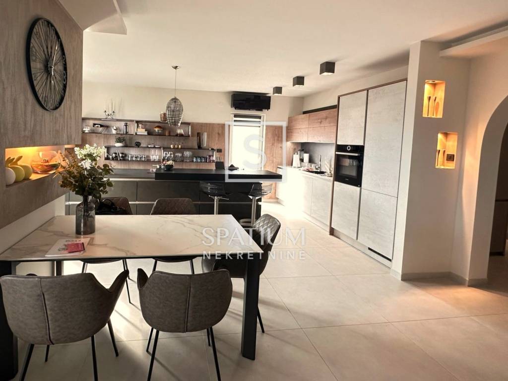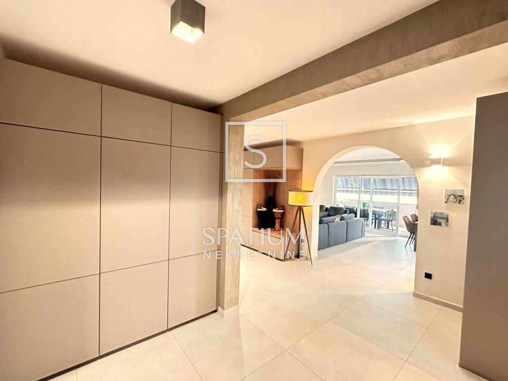 PEHLIN, we have an excellent 4-bedroom + living room with a total area of 217.00m2 with a view of the Kvarner Bay, Opatija and Učka. It consists of a spacious entrance hall that connects to the "open space" concept of a modern kitchen with a dining room and a large living room with access to a beautiful and spacious terrace sheltered from view, which provides additional space for relaxation and enjoyment. There are also four bedrooms and two bathrooms, one of which is equipped with a massage tub. It is oriented south so that it is abundant in natural light, creating a pleasant atmosphere throughout the day. Excellent insulation (Porotherm bricks and thermo-plaster) guarantees maximum energy savings so that during the summer the use of air conditioning is minimized as well as the need for heating in the winter. The apartment was completely renovated in 2022. Security doors have been installed, it is equipped with high-quality furniture (Nolte kitchen, Bosch kitchen appliances, sanitary ware from renowned manufacturers, parquet floors and tiles of the highest class, Serta bed/mattress...). Heating and cooling in the apartment is provided by an inverter air conditioner (Mitshubishi). The apartment has a separate entrance, staircase and driveway that is shared only with another unit in which a quiet family of three lives. It is located in an excellent and quiet location - in a dead end street, surrounded by family houses. The apartment also has a spacious basement of 20 m², as well as two parking spaces in a fenced and landscaped garden. If you are looking for a spacious family apartment with a modern interior and in an excellent location near the post office, bank, dentist, doctor, kindergarten, school and supermarkets (Lidl, Plodine, Interspar), then this is the right opportunity for you. PEHLIN, Hosti (Pehljin) was located, as it is today, on the main road, a very old road from the 16th century that went from Rijeka in the direction of Sv. Matej (Vozišće, turnoff to Kastav), Škalnica (turnoff to Klana) and further towards Kranjska (Ljubljana). Around 1717. This state road has been widened. The settlement of Hosti, Pehljin, has sprung up along this road. For all other information, please contact us with confidence. Sanjin Latinčić Licensed agent +385912899599 sanjin@spatium.hr Spatium nekretnine +385 51 272 903 info@spatium.hr