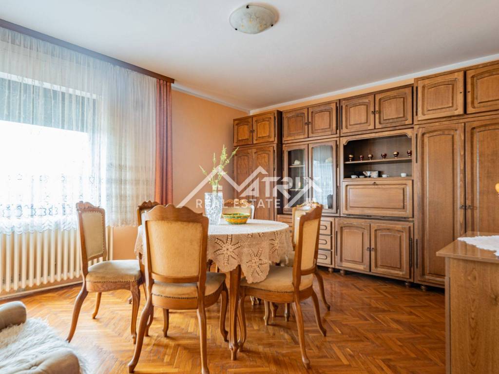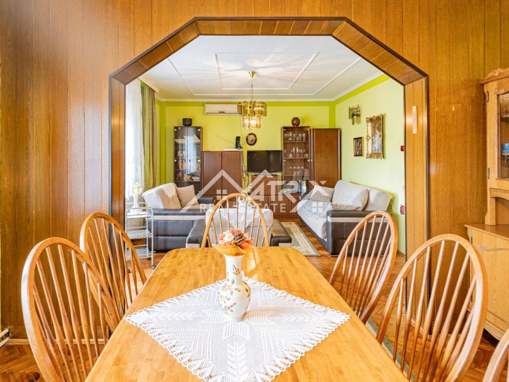 In the peaceful Baranja village of Bolman, a spacious family house built in 1984 is for sale, offering comfortable living surrounded by nature. The house consists of three bedrooms, a large living room connected to the dining area and kitchen, and several auxiliary rooms for everyday functionality. A garage is included, perfect for parking or additional storage space.