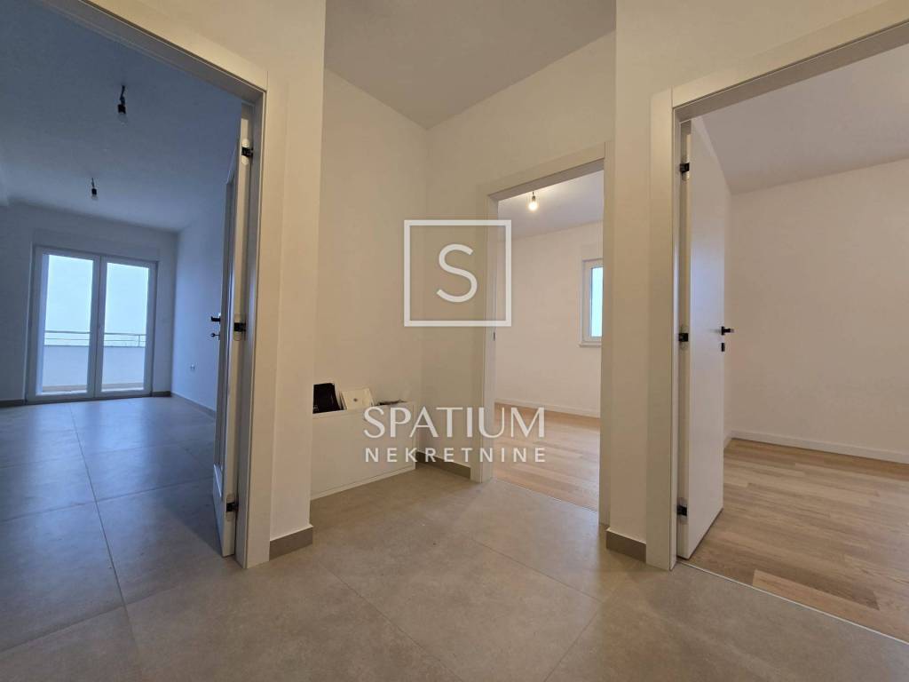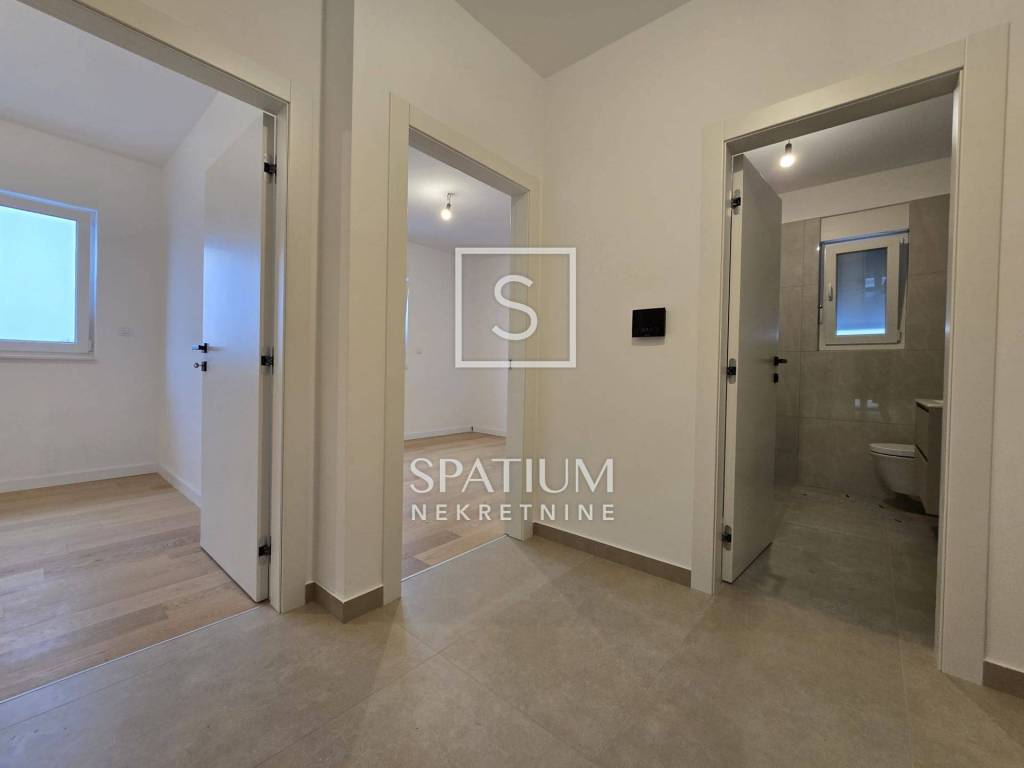 VIŠKOVO, We have received a modern apartment in a new building, located on the second floor of a small residential building with only six units. The apartment offers an extremely functional layout and plenty of natural light thanks to its southern orientation. The apartment consists of: Hall: 5.64 m² Kitchen, dining room and living room: 27.16 m² Room 1: 12.00 m² Room 2: 10.20 m² Room 3: 13.51 m² Bathroom: 5.61 m² Terrace: 9.68 m² Total net area of the apartment: 87.63 m² Total gross calculated area with coefficients: 99.13 m² The building was built to high standards with an emphasis on energy efficiency and comfort. The facade is insulated with 10 cm thick thermal insulation, and the apartment is equipped with underfloor heating via heat pumps. High-quality PVC joinery with roller shutters and mosquito nets has been installed, while the floor and wall coverings were chosen with special attention to quality and aesthetics. Preparations for air conditioning will be installed. The apartment has its own covered terrace, ideal for enjoying peace and sunshine, and it comes with 3 outdoor parking spaces and a part of the garden of approximately 40m², which is a great advantage in everyday life. The location is extremely practical - in the immediate vicinity (250 to 750 m) there are all key facilities: entrance/exit to the bypass, bus stop, school, kindergarten, shops, post office, bank, pharmacy, clinic, sports center, restaurants and gas station. It is ideal for a family. The property is neat and clean, which allows for a quick and safe purchase. The occupancy permit will be obtained in August 2025. The area of the Viškovo municipality is located northwest of Rijeka on an area of only twenty square kilometers. The proximity of Rijeka, Opatija, the border crossing with Slovenia, the beauty of nature and the convenience of living in a small town are features that make this area increasingly attractive. Viškovo is now complete with all the amenities necessary for a modern way of life and business. In the center of the town are: a church, a school, a kindergarten, a post office, a health center, a pharmacy, a library, banks, a FINA branch, credit and savings and insurance companies, a gas station and a number of craft and service activities. There are several larger settlements. The settlement of Marinići is the fourth largest in terms of area, with the largest number of inhabitants, followed by: Viškovo, Marčelji, Saršoni, Mladenići, Sroki and Kosi. For other information, please contact us with confidence. Leo Cerniar licensed agent +385 95 901 4093 leo@spatium.hr Spatium nekretnine + 385 51 272 903 info@spatium.hr