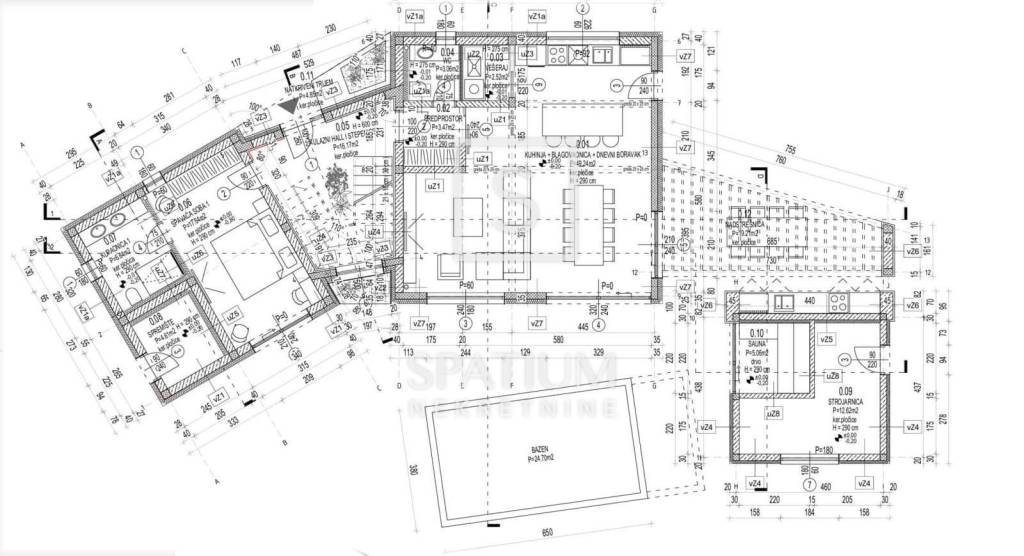 - The ground floor leads to the terrace with pool, summer kitchen, bioclimatic pergola and sauna.