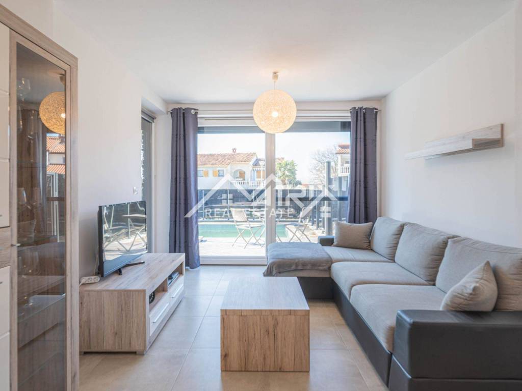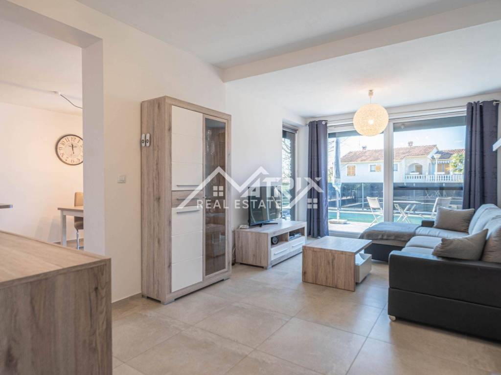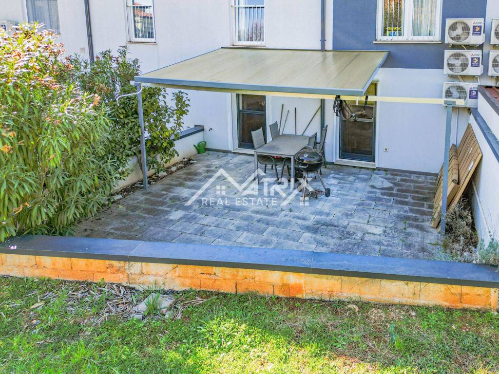 This modern, fully furnished apartment is located on the ground floor of a residential building with five apartments in total, in a peaceful neighborhood near Poreč. The location offers a perfect balance between tranquility and proximity to key amenities, as the sea is only 4 km away. The area is primarily composed of family homes and small apartment buildings, ensuring privacy and a pleasant living environment.