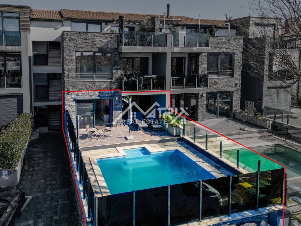 The apartment is equipped with air conditioning for heating and cooling, and the windows feature electric shutters and high-quality mosquito nets. The heated pool is surrounded by a panel fence, ensuring privacy. The apartment is sold furnished and is in excellent condition, having been used only a few weeks per year as a private holiday home.