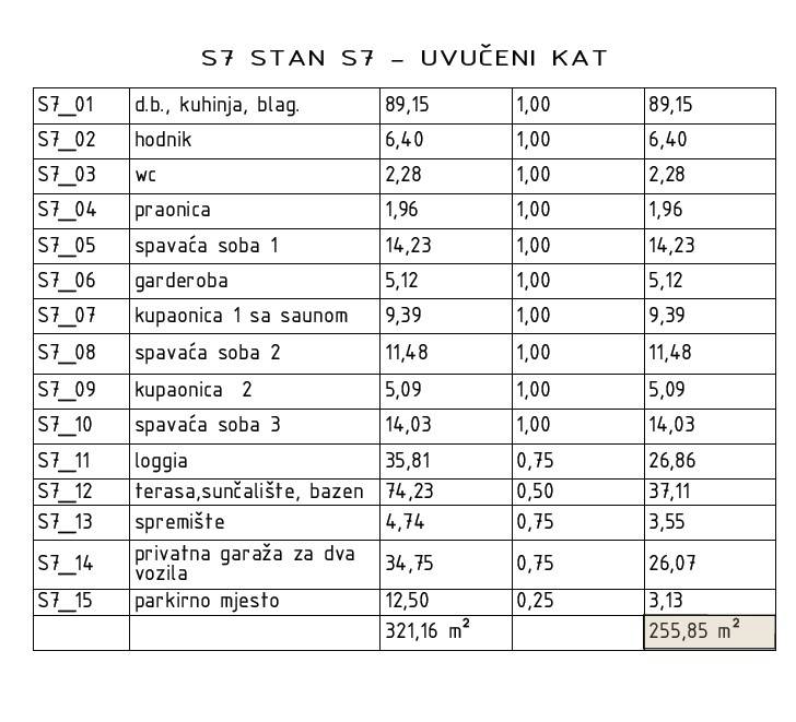 This beautiful apartment has an exit from the living room to a spacious terrace of 74.23 m2, which comes with a luxurious jacuzzi and a huge relaxation area that offers a beautiful panoramic view of the Croatian islands.