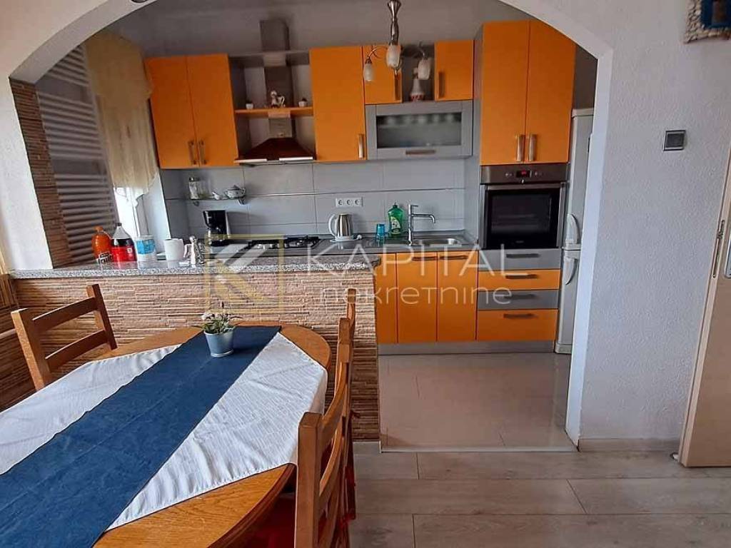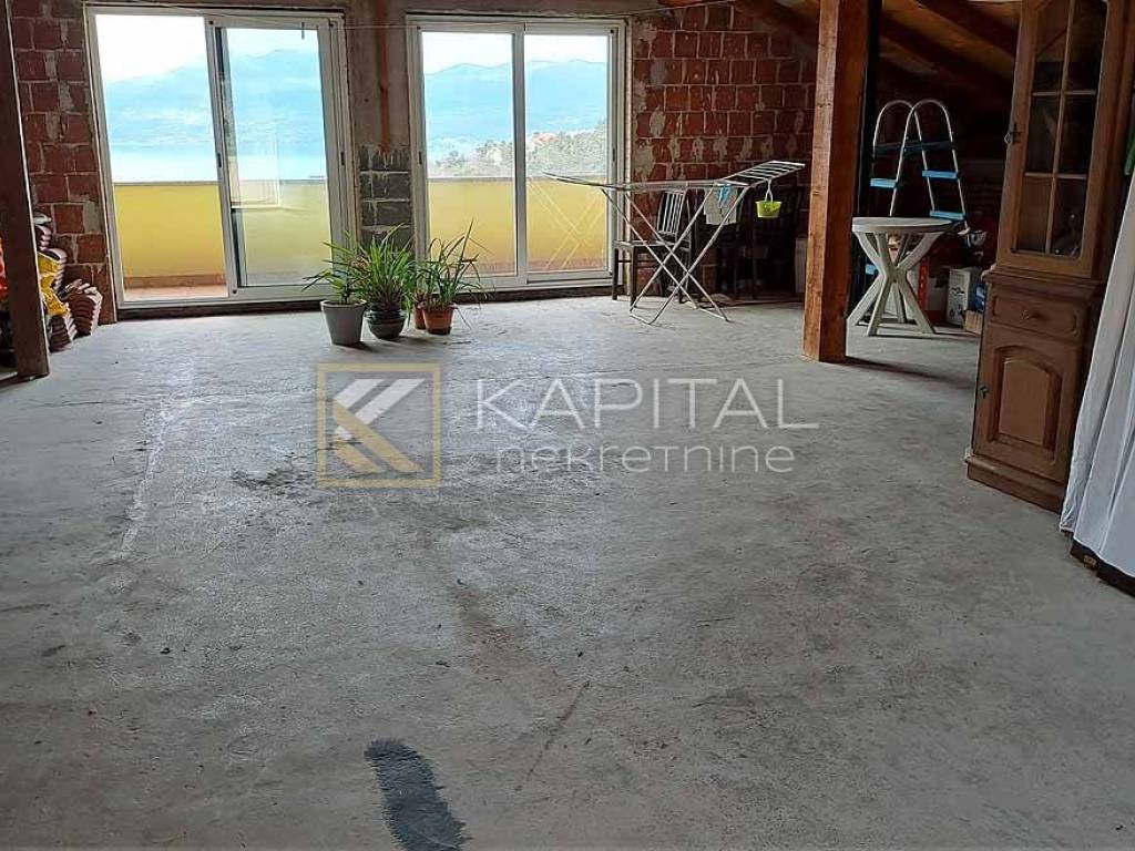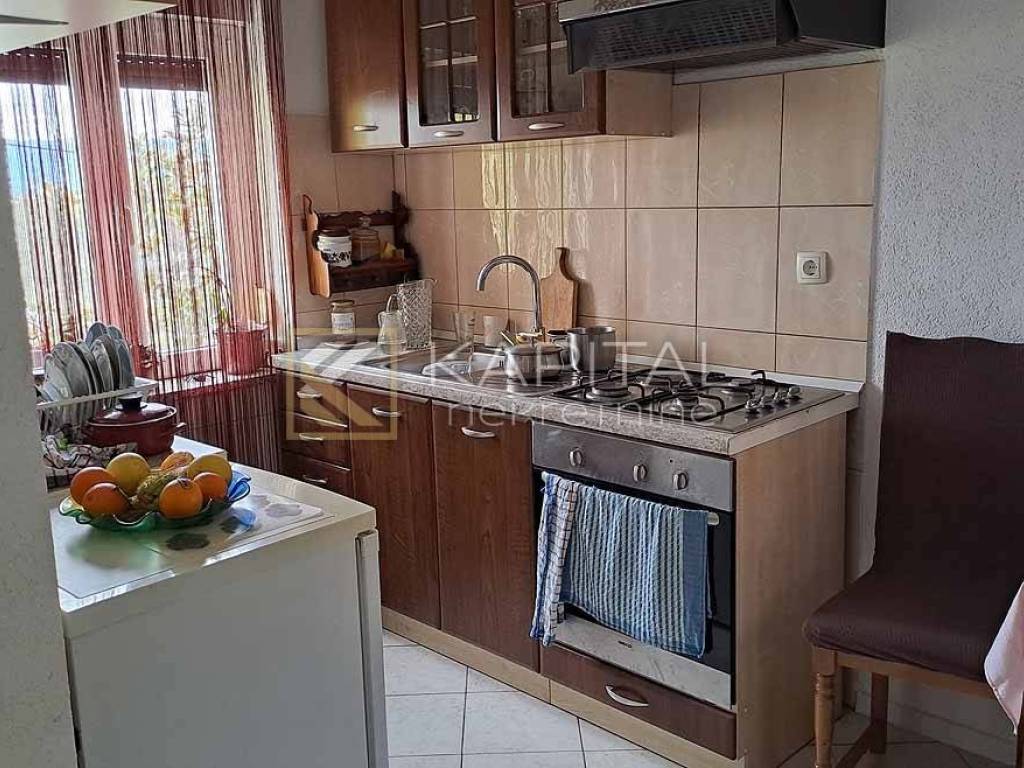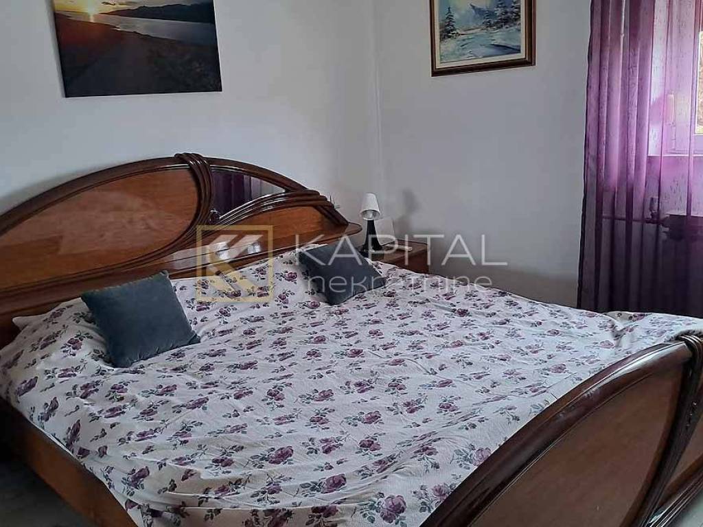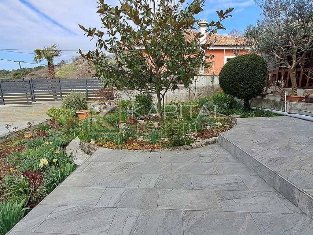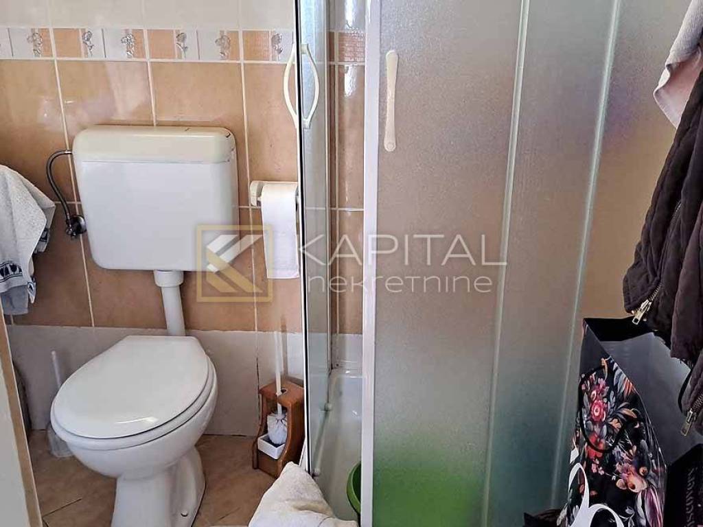 Detached house with landscaped yard and open sea view. There are 3 garages along the road, next to which you can reach the ground floor of the house by stairs. On the ground floor there are 2 large taverns of approx. 30 m2. There are 2 apartments on the first floor. One 1s db (approx. 40 m2) and another 3s db (approx. 90 m2) with balcony and categorization (3 *). On the west side of the house there is a summer kitchen and external stairs to the attic. The attic is approx. 100 m2, roh-bau with a balcony. Given that the attic has sufficient height, another apartment can be obtained without any problems, given that it can be reached by external stairs. For all information, call 099/219-6354