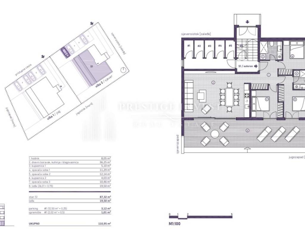 Apartment S1 - basement - 110.95m2 - Beautiful view - Villa 2 - Apartment S1 is located in the basement, with a total net area of ​​110.95m2. The apartment consists of a spacious open space kitchen, dining room and living room, 3 bedrooms, 2 fully equipped bathrooms, hallway and loggia. In addition, the apartment also has a storage room and a parking space.