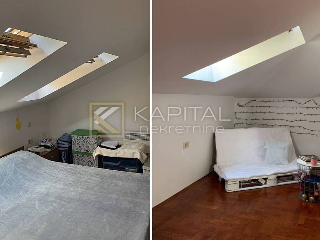 We have for sale a two-story apartment of 91 m2 in an attractive location. The apartment is located on the first floor of a well-maintained building, and consists of an entrance area, a kitchen with a dining room and a living room that leads to a balcony with a view of the sea. Internal wooden stairs lead to a high attic where there are two bedrooms and a bathroom. PVC doors and windows. Possibility of wood heating. The apartment has a parking space under the building. Shops, restaurants, beach...about 10 min. For all information call /