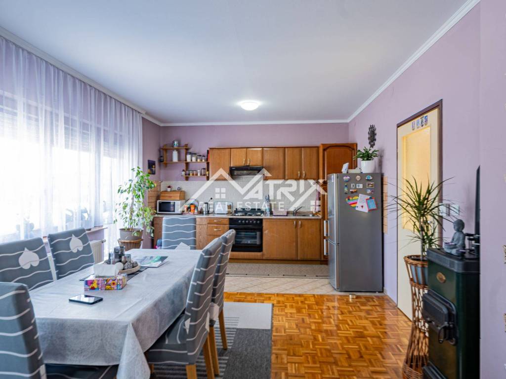Located in the peaceful settlement of Sarvaš, just minutes from Osijek, this spacious house offers excellent potential for a large family or rental investment. The property spans 100 m² of living space and sits on a generous 1283 m² plot, which includes a landscaped yard and additional land.