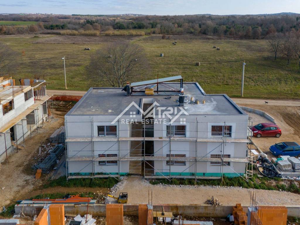 In a quiet neighborhood near Poreč, a modernly decorated apartment is for sale, located on the floor of a new building with a total of five residential units. The apartment has a total area of 90 m2, with a roof terrace that extends over the entire apartment, which makes it particularly attractive.