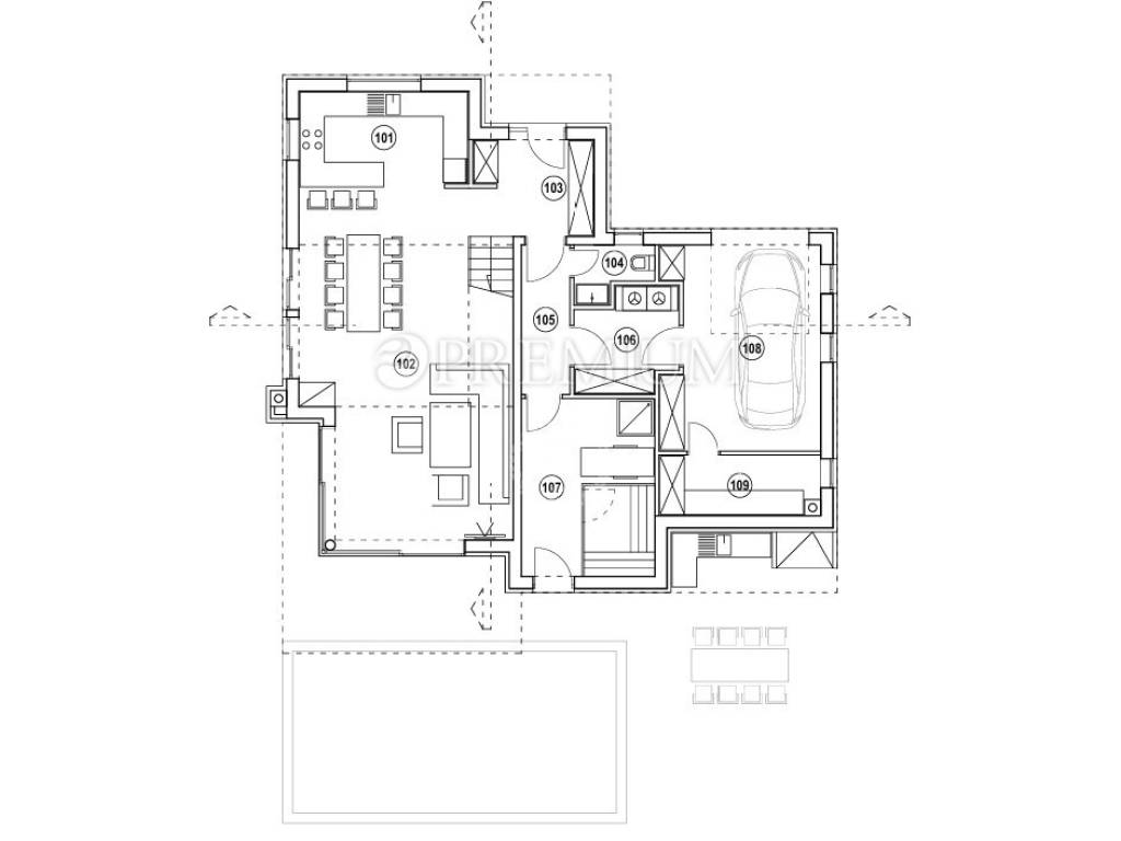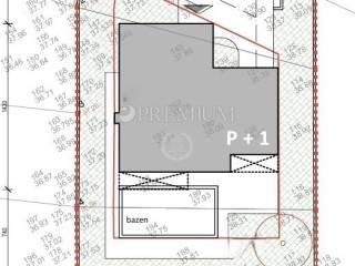 Za zemljište je izrađeno idejno rješenje za izgradnju moderne samostojeće obiteljske kuće katnosti P + 1, s bazenom i dvama parkirnim mjestima. S kata buduće kuće pruža se pogled na more, što ovu nekretninu čini idealnom za izgradnju kuće za odmor ili stalni život.