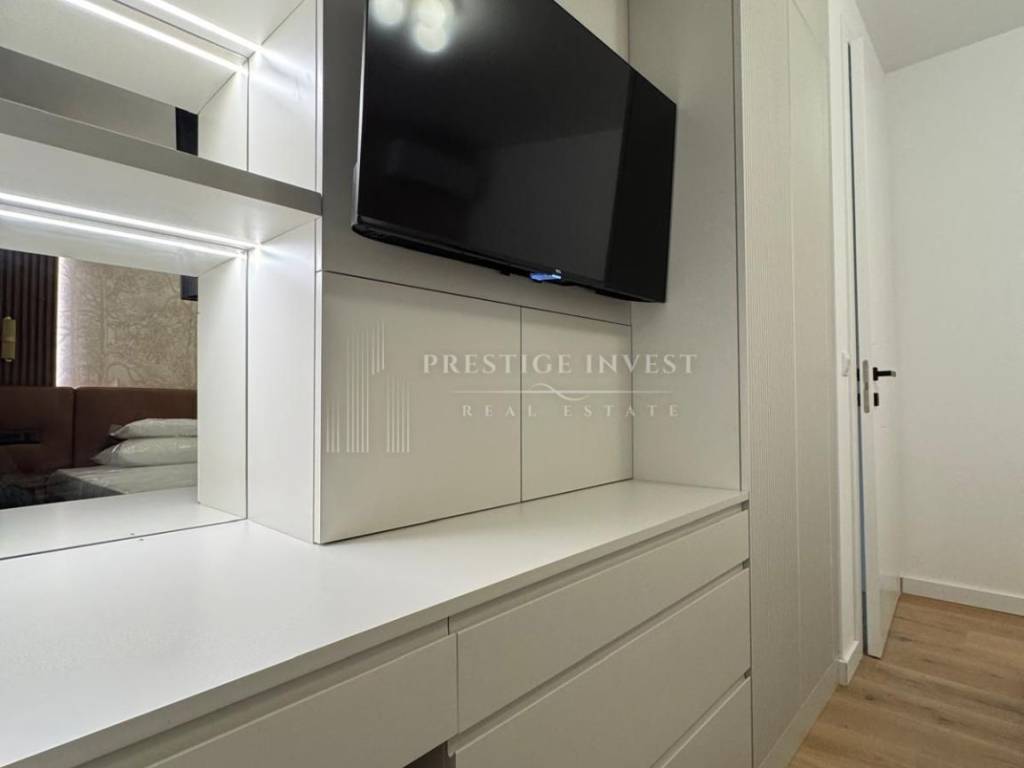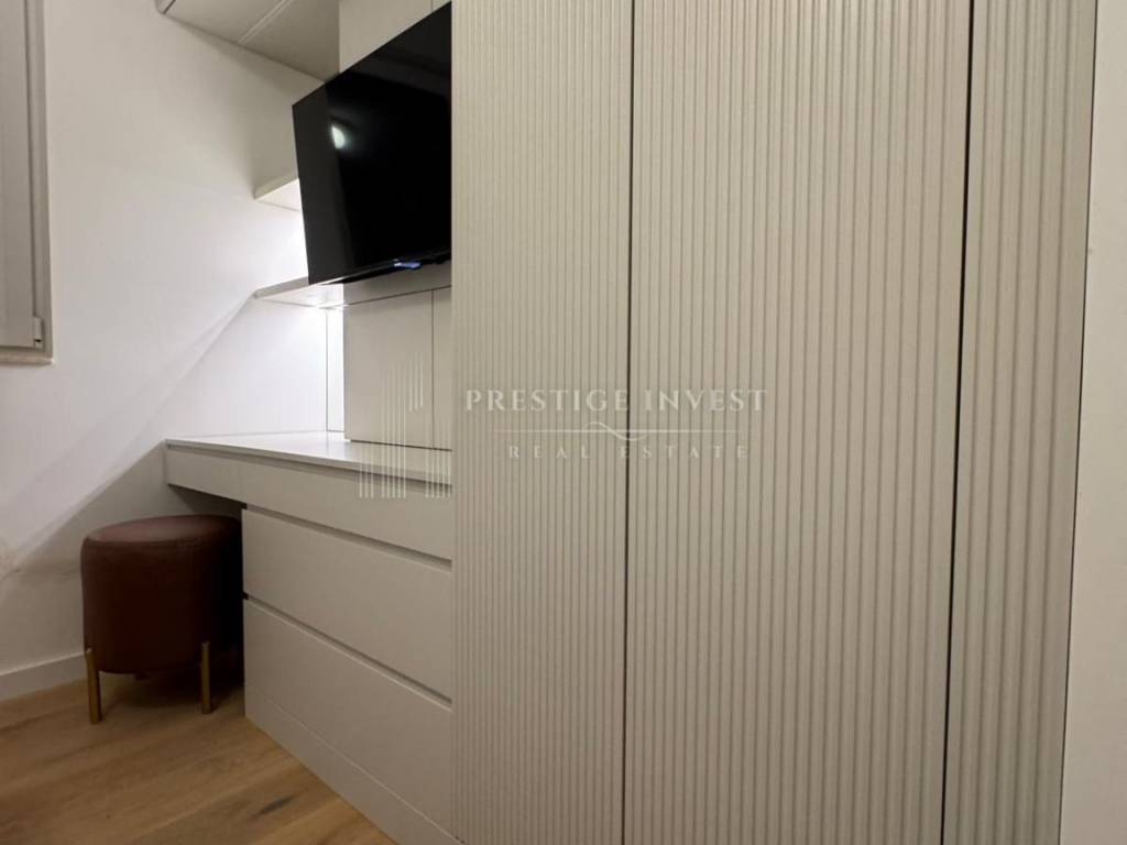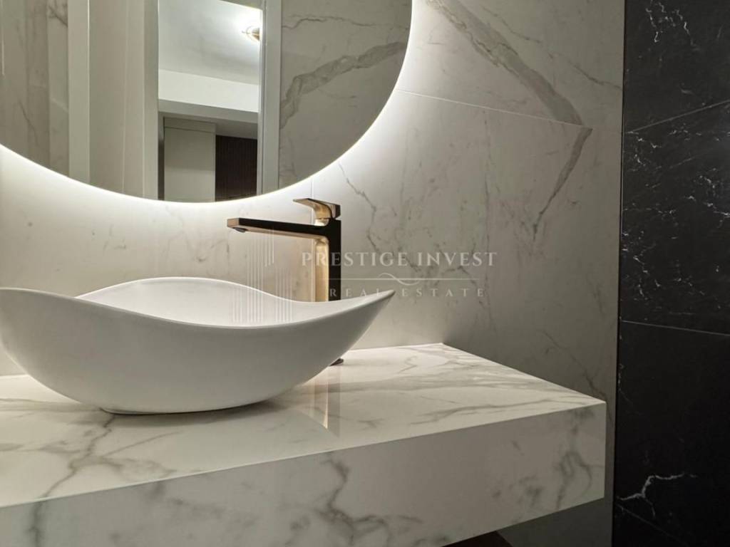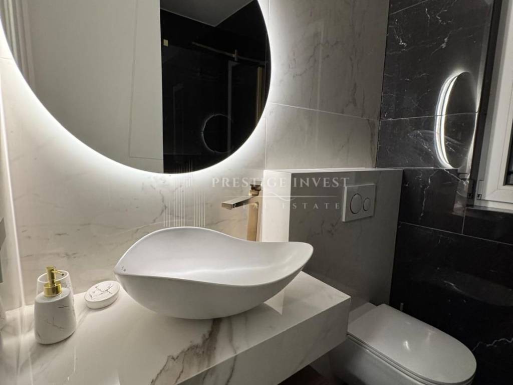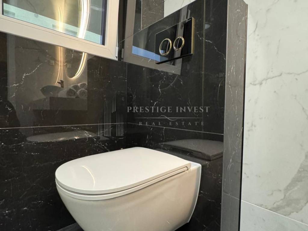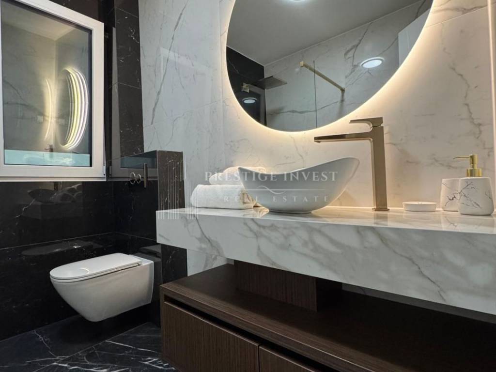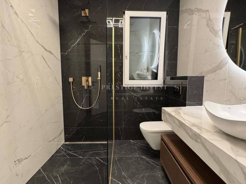 1. The penthouse is two-storey - 120.98 m2 - has a roof terrace with a sundeck and sauna - additional toilet, heated roof pool of 19m2, preparation for an outdoor kitchen, storage in the basement and two outdoor parking spaces.