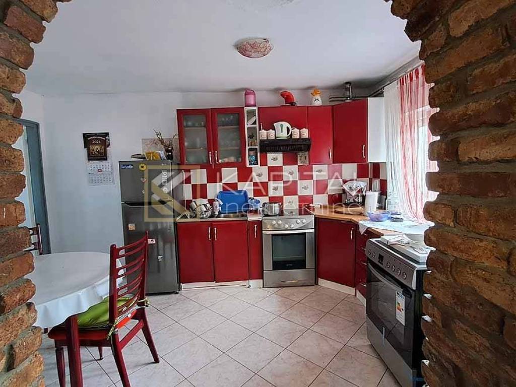 Old duplex, S P 1. The house consists of two residential units, in the basement there is a garage, a boiler room and 2 taverns. On the ground floor there is a kitchen and 2 bedrooms, a bathroom, and on the first floor there are 2 bedrooms and a hallway. Among the beam constructions, an internal staircase. There is a new roof on the house and central oil. The house has two large terraces of 20 m2 and a balcony of 2 m2. The house has a 160 m2 yard. Ideal for families with children who like peaceful surroundings and lots of greenery. There is a parking lot in front. The two-story apartment has been adapted, while the other residential unit is for adaptation. For all information, call 385 99/2196-354