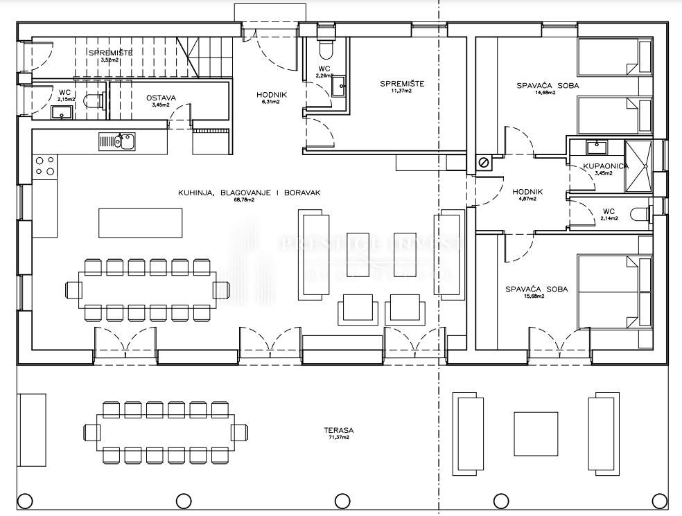 - outdoor areas, especially the terraces, are paved with white, high-quality Brač stone