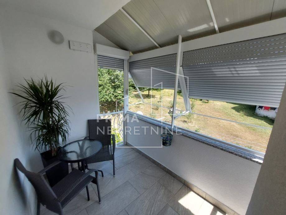 It is equipped with PVC carpentry, security doors, new aluminum shutters and canopy, mosquito nets. In 2013, all installations were changed (water, drainage, electricity), oak parquet, new ceramics, sanitary facilities, walk-in shower with a glass wall were installed. It is also equipped with air conditioning, new ceiling fans with lighting, as well as new kitchen appliances (induction hob, dishwasher, large refrigerator, pyrolysis oven).