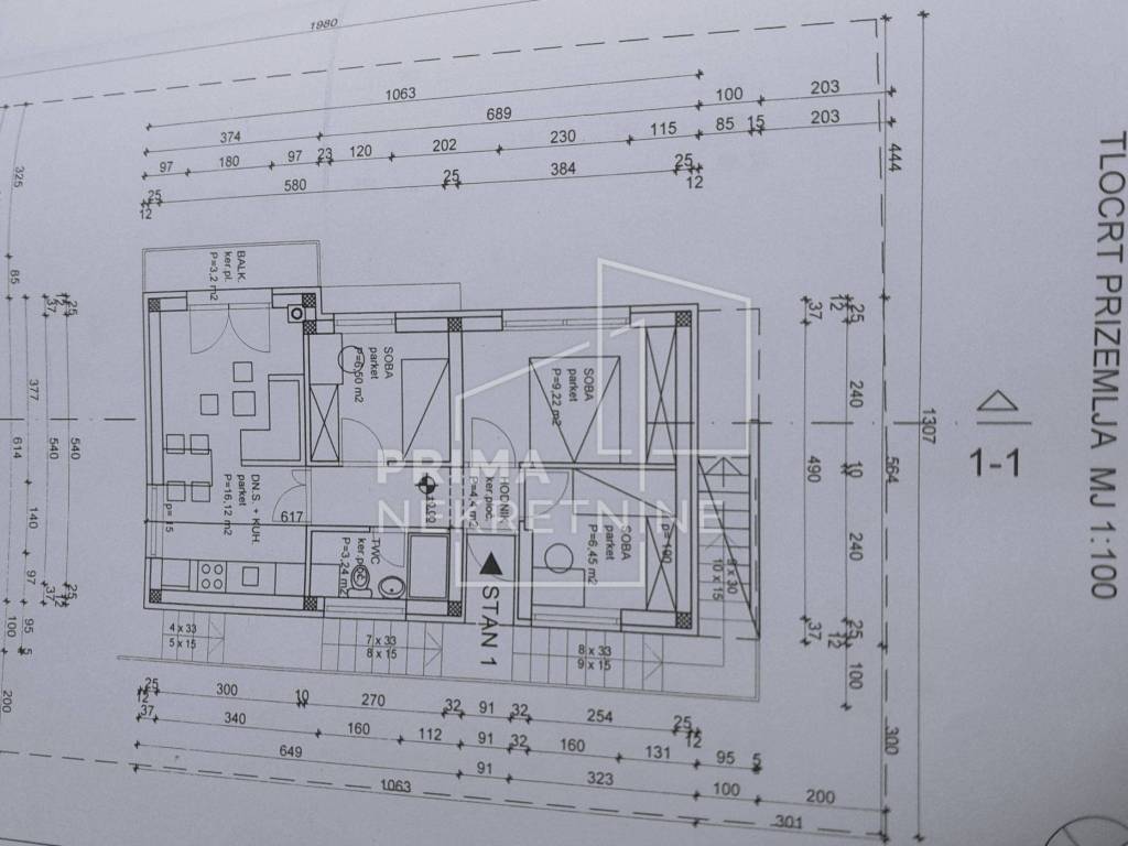 It consists of two residential units with separate entrances and a garage of 28.80 m2.