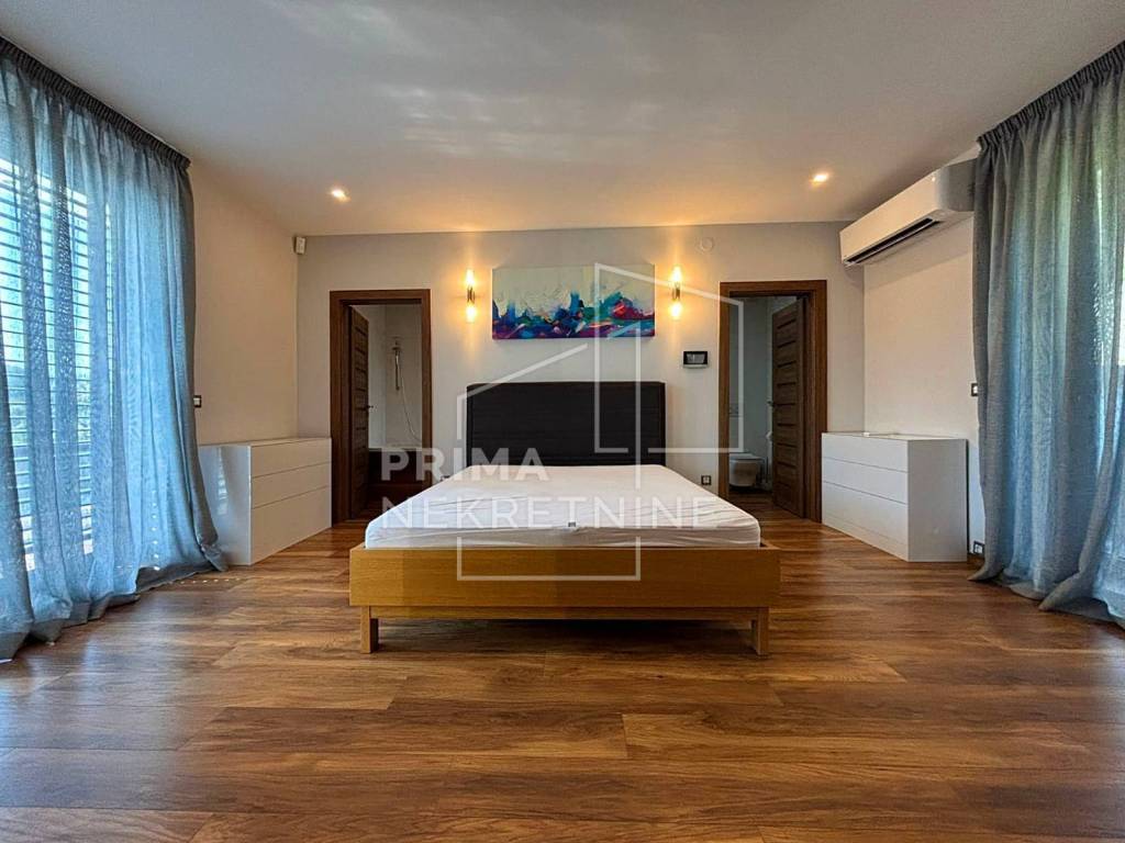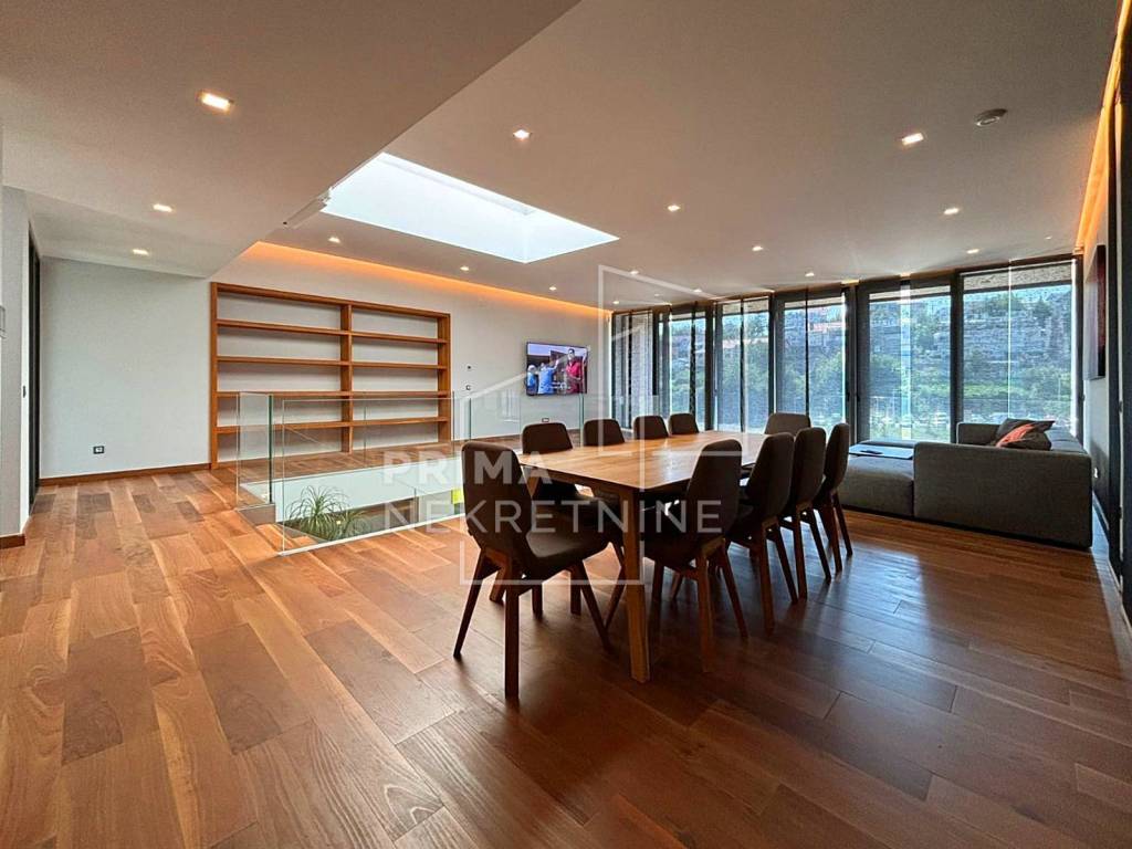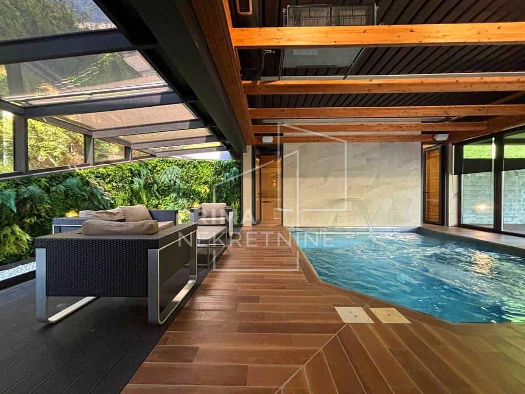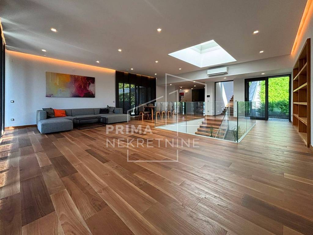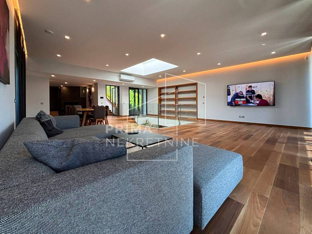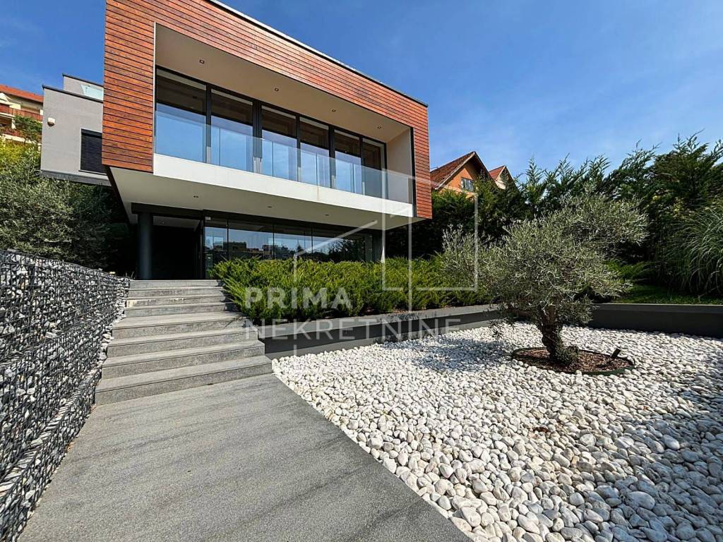 A modern detached house with a swimming pool located in the foothills of Medvednica in a quiet and prestigious part of Gračani. This elegant property extends over four floors with a total area of 450 m², combining top design, luxury and comfort.