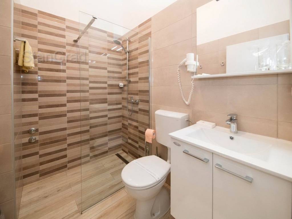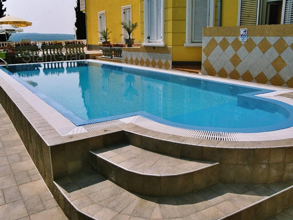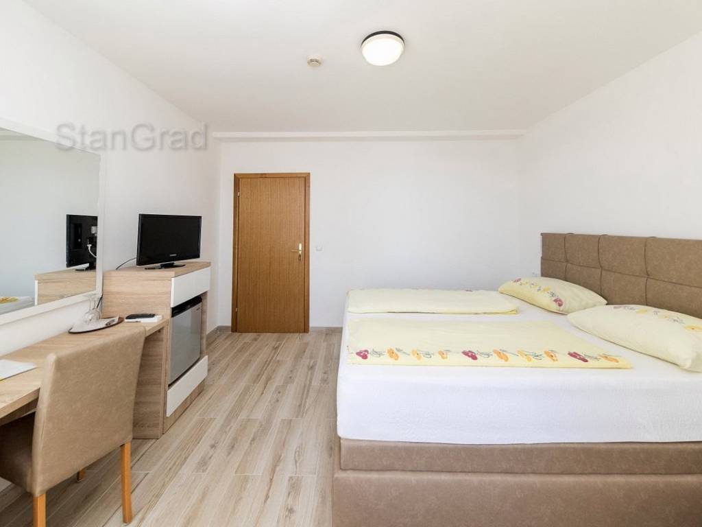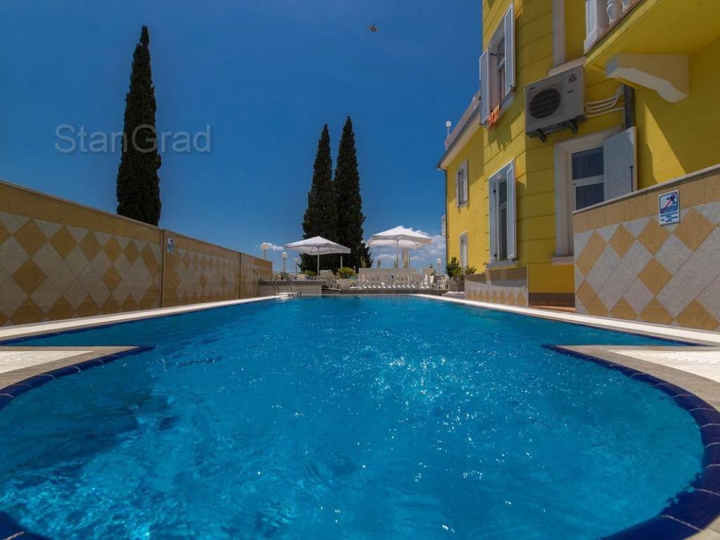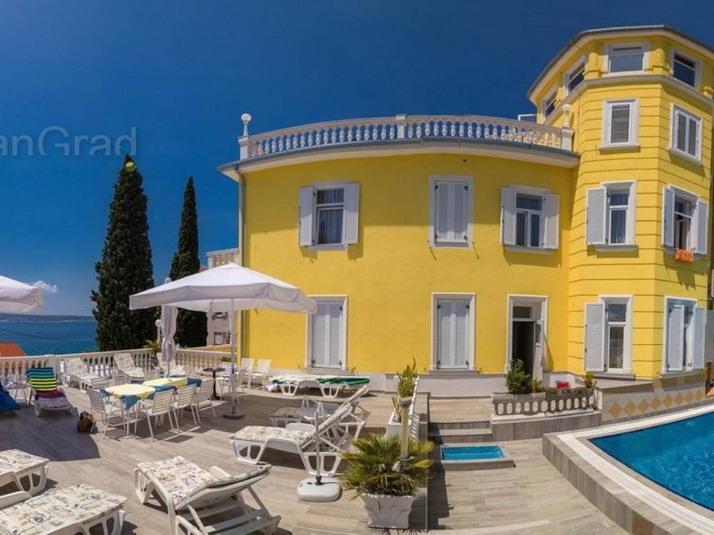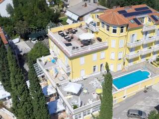 Na samo 50 m od mora a u samom središtu turističkog mjesta, prodaje se uhodani hotel u punom radnom pogonu. Inače, hotel je 2001. godine, od starinske vile stare 120 godina, dogradnjom, rekonstrukcijom i adaptacijom pretvoren u moderan i vrlo ugodan turistički objekt sa svim blagodatima koje pruža sjajna lokacija ovog hotela. Objekt raspolaže sa cca 75 ležaja u 24 sobe, 2 obiteljske sobe, 1 apartman i 1 veliki stan površine 250 m2, lijepo namješten i opremljen restoran, vanjske terase sa prekrasnim pogledom, 17 parking mjesta, sve potrebne prateće gospodarske sadržaje, kotlovnicu za centralno grijanje, skladišta, prostorije za čuvanje hrane, solarne panele za toplu vodu i sl. Popunjenost hotela je vrlo visoka a uz vrlo mala ulaganja je moguće isposlovati i četvrtu zvjezdicu. Jedan od vodećih svjetskih portala HolidayCheck je hotelu za 2019. godinu dodijelio ocjenu 6/6. Što je vrlo bitno, hotel posjeduje potpuno urednu i čistu vlasničku dokumentaciju a što omogućuje novom vlasniku vrlo lagan i brz ulazak u vlasništvo i posjed ove poslovno zanimljive nekretnine. Nije zanemarivo ni to što hotel ima i vlastite već dobro obučene zaposlenike što također olakšava novom vlasniku bezbolnu tranziciju. Sve u svemu, dobra prilika za ozbiljne investitore koji žele nastaviti i unaprijediti turističku djelatnost.