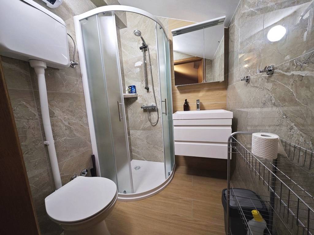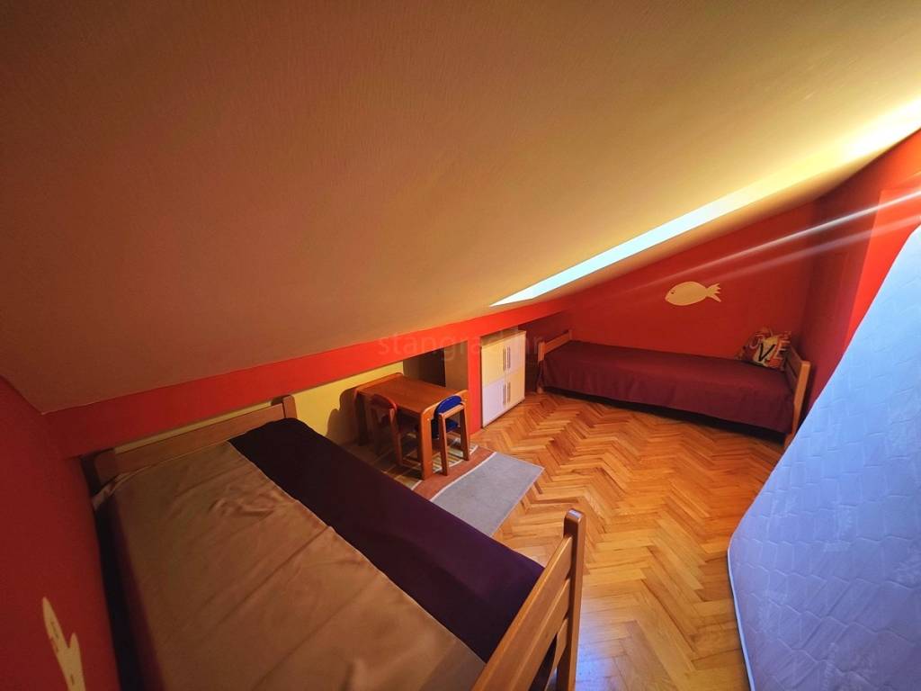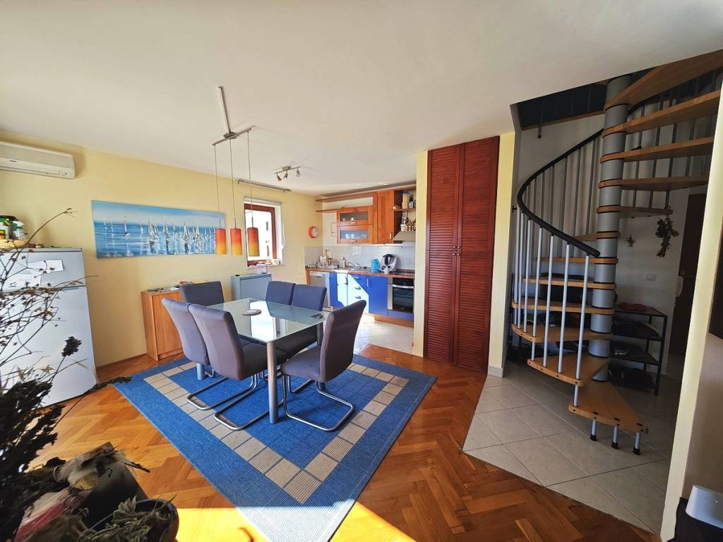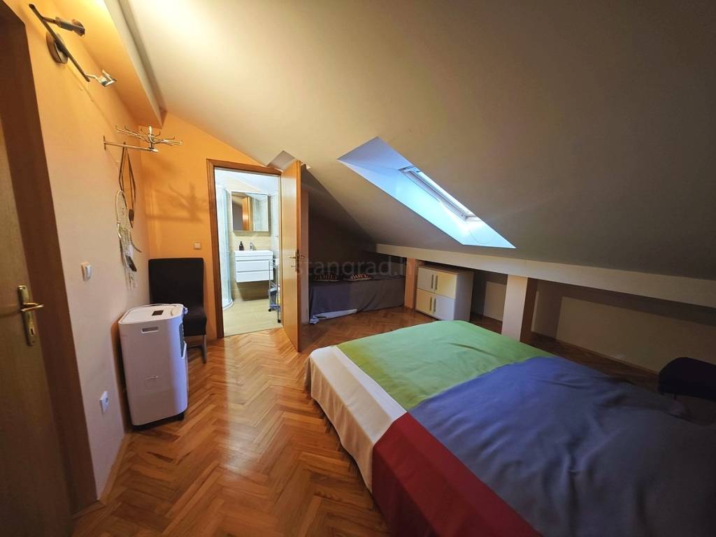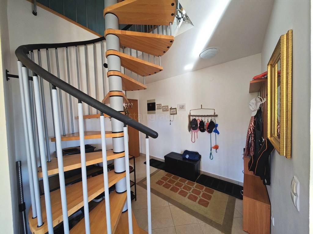 This is a two-story apartment with an internal staircase and an entrance area on the lower floor. Situated in a well-constructed building, the apartment occupies the second floor and the attic, with a total area of 108 m². It consists of an entrance hall, a living room with a kitchen and dining area, a bathroom, and a covered terrace on the second floor, while the attic features three bedrooms and a second bathroom. The interior is very well maintained, fully furnished with quality furniture, and equipped with all necessary technical appliances, making it ready for immediate occupancy or tourist use.