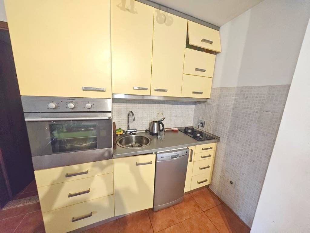 Situated in a well-constructed building, the apartment is on the ground floor. It has a total area of approximately 36 m², which includes a living room with a kitchen and dining area, a bedroom, a bathroom, and a spacious covered terrace of 27 m². The interior spaces are equipped with the necessary appliances and functional furniture. The apartment owner will have one designated parking space. In addition, the apartment is oriented to offer a pleasant view of the charming coastal landscape and the surrounding area.