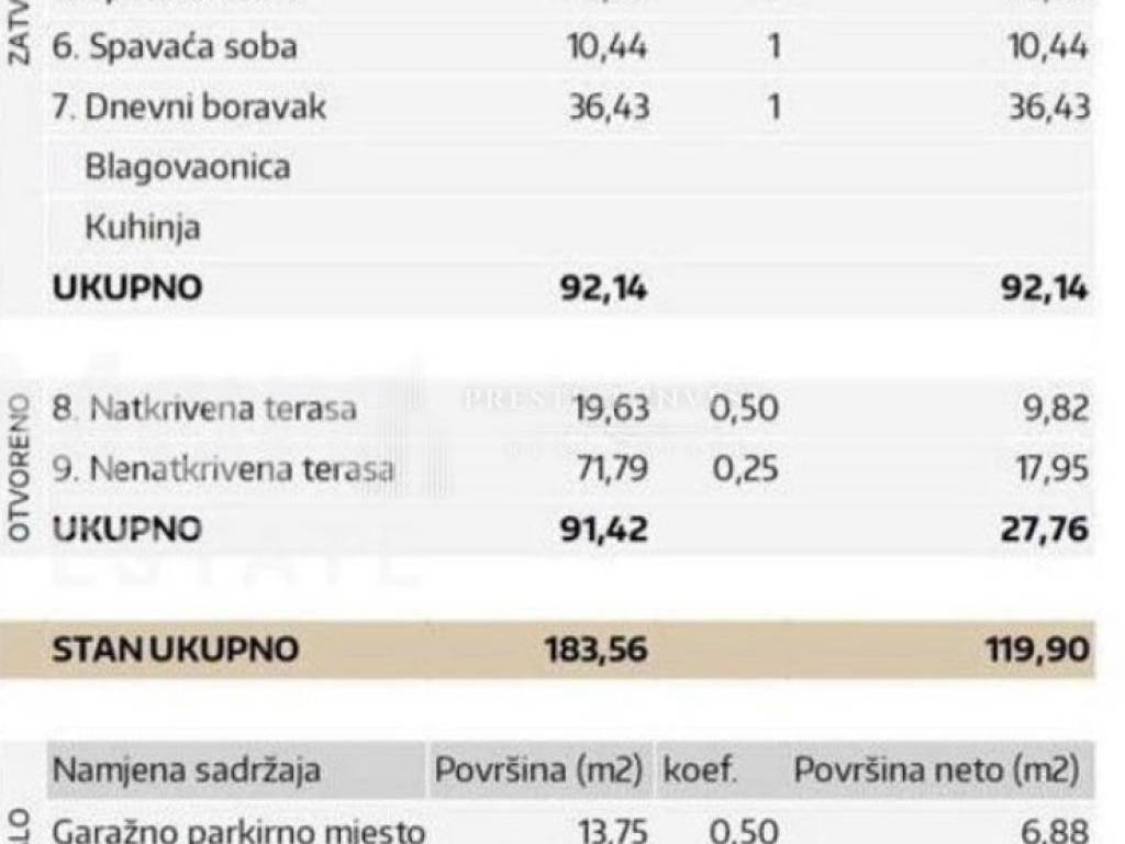 For sale is a spacious penthouse located in a quiet location in Zadar, Belafuža neighborhood, with a total usable area of 127 m². The apartment offers an ideal layout and excellent additional facilities, including a garage and a large terrace.