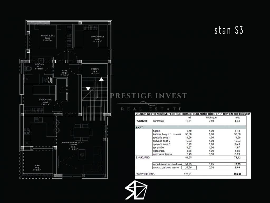 For sale is a modern three-bedroom penthouse S3 located on the 2nd floor of a new building (a small residential building with only 3 apartments) in the attractive Stanovi location, just a few minutes from the center of Zadar. The apartment is an ideal choice for everyday family life with top quality construction, functional layout and additional spaces.