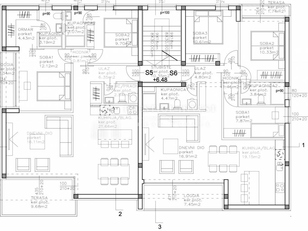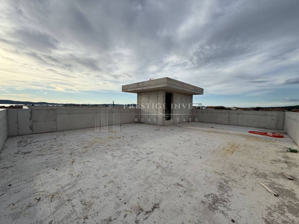 SUKOŠAN, NEWLY BUILT 3-BEDROOM PENTHOUSE S6 WITH ROOF TERRACE BUILDING with six residential units spread over three floors: ground floor, 1st and 2nd floor. Each apartment has one parking space and storage room. The penthouses also have roof terraces. Area breakdown: Entrance: 4.80m² Living room: 16.91m² Kitchen and dining room: 19.15m² Bathroom 1: 4.47m² Bathroom 2: 3.84m² Bedroom 1: 10.61m² Bedroom 2: 10.33m² Bedroom 3: 7.87m² Hallway: 1.46m² Total net living area: 79.44m² Total net usable area with accessories: 83.69m² Appearance areas: Loggia: 7.45m² × 0.75 = 5.58m² Terrace (regular): 1.74m² Parking space: 2.75m² Storage room: 2.02m² Roof terrace approx. 22m² Other available residential units: S3 (1st floor): 91.16m² – €273,480 S4 (1st floor): 83.69m² – €251,070 S5 (2nd floor, roof terrace): 87.82m² – €307,370 S6 (2nd floor, roof terrace): 83.69m² – €292,915 EQUIPMENT SPECIFICATIONS: Underfloor heating and hot water preparation system via heat pump Ceramic tiles and sanitary ware Aluminum joinery with electric shutters and mosquito nets Air conditioners in every room Parquet floors in bedrooms; ceramic tiles in other rooms Completion of construction: summer 2026 Ownership: legal entity in the VAT system The buyer does not pay real estate tax For additional information, photos, documentation or to arrange a viewing: Phone: +385 95 73 55 171 E-mail: info@prestigeinvest.hr ID CODE: 708 Ivana Ančić Voditelj ureda Mob: +385 95 73 55 171 Tel: +385 95 588 8082 E-mail: info@prestigeinvest.hr www.prestigeinvest.hr