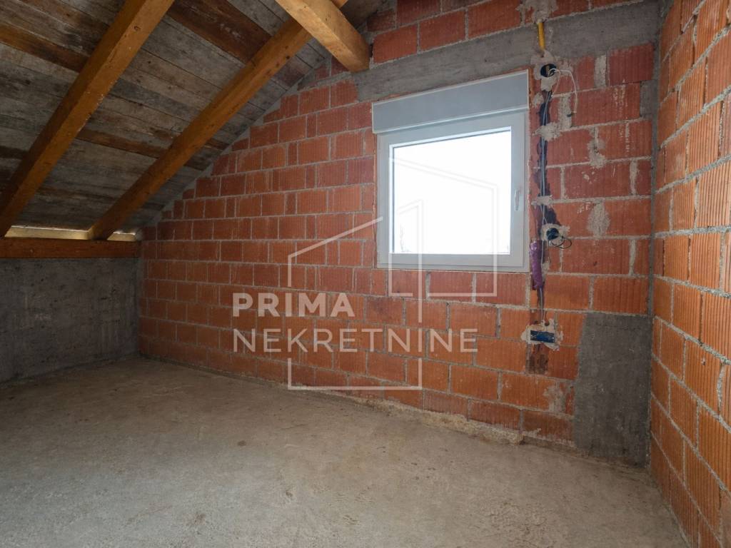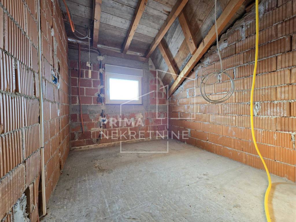 A four-room apartment with a total area of 90 m² is offered for sale, located in the attic of a smaller residential building with only three apartments, situated in a quiet cul-de-sac in an exceptionally attractive location in Dugo Selo, close to the city center.