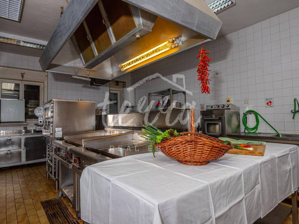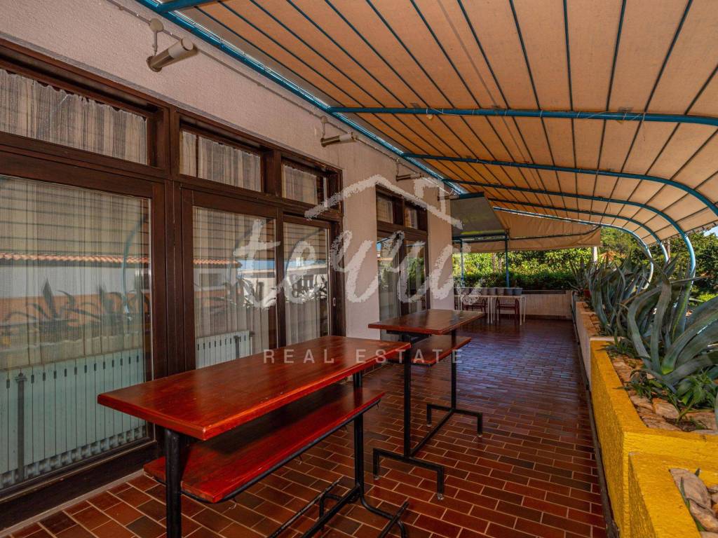 Prizemlje poslovnog prostora očarava svojom prostranošću i elegancijom. Ovdje se nalazi prostrani šank, dvije sale za sjedenje, kuhinja opremljena za poslovanje, te ugodan office prostor. Posebno treba istaknuti natkrivene i nenatkrivene terase koje omogućavaju gostima da uživaju u spektakularnom pogledu dok uživaju u hrani ili piću.