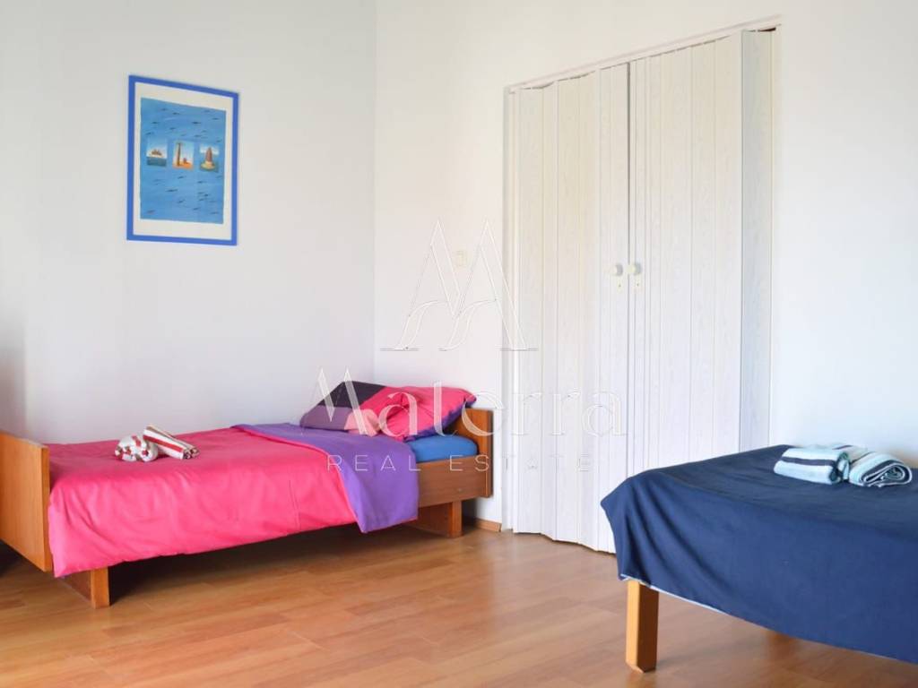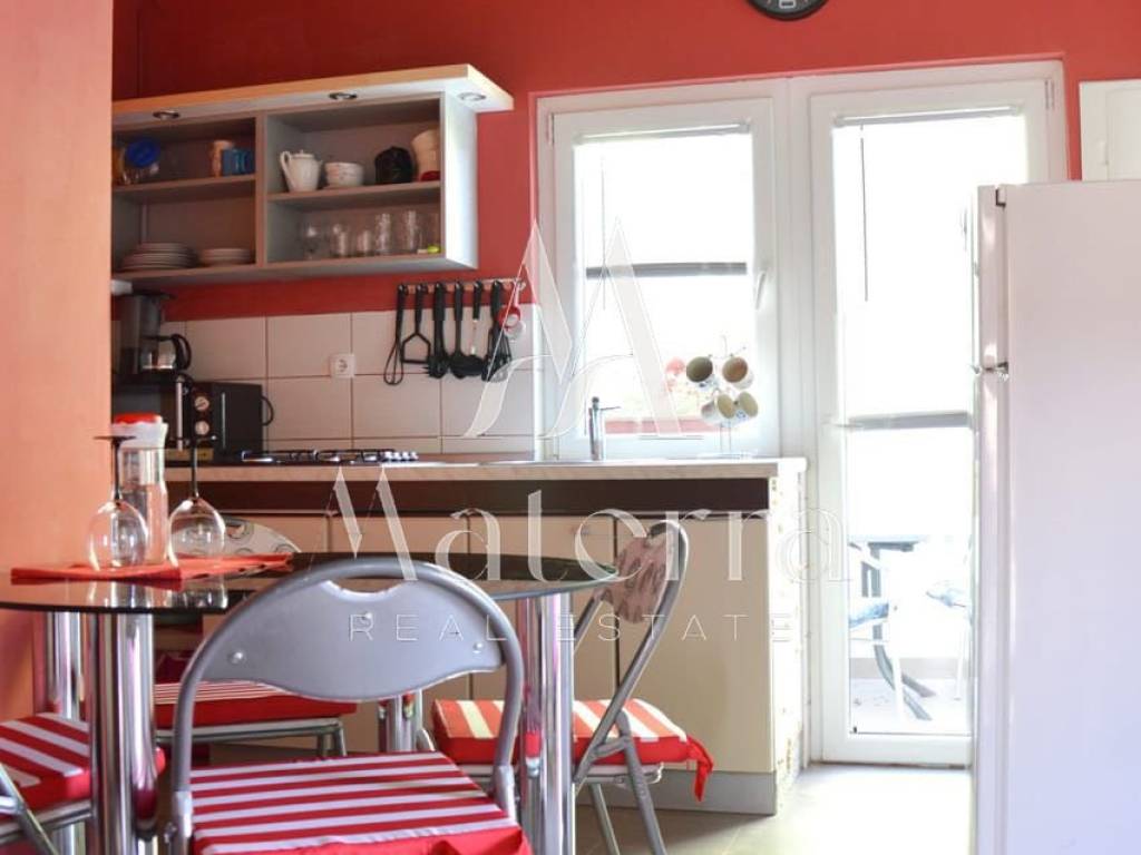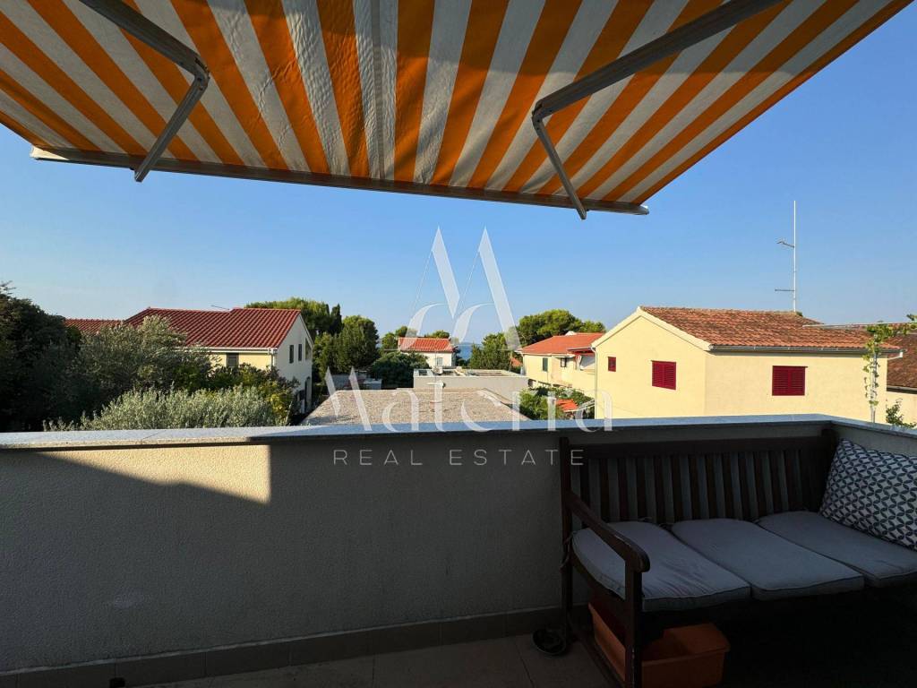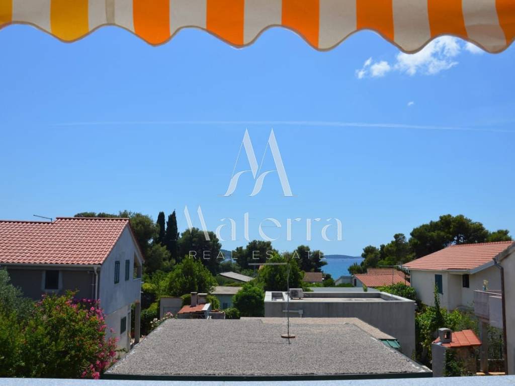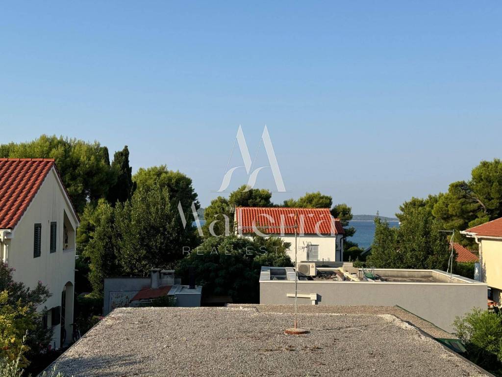 In a quiet and sunny location, in the southern part of Jadrija, a semi-detached (duplex) house with a spacious yard, auxiliary buildings, and a beautiful sea view is for sale. The property is an excellent choice for a family holiday home, year-round living, or an investment in tourist rental. It has a valid occupancy permit.