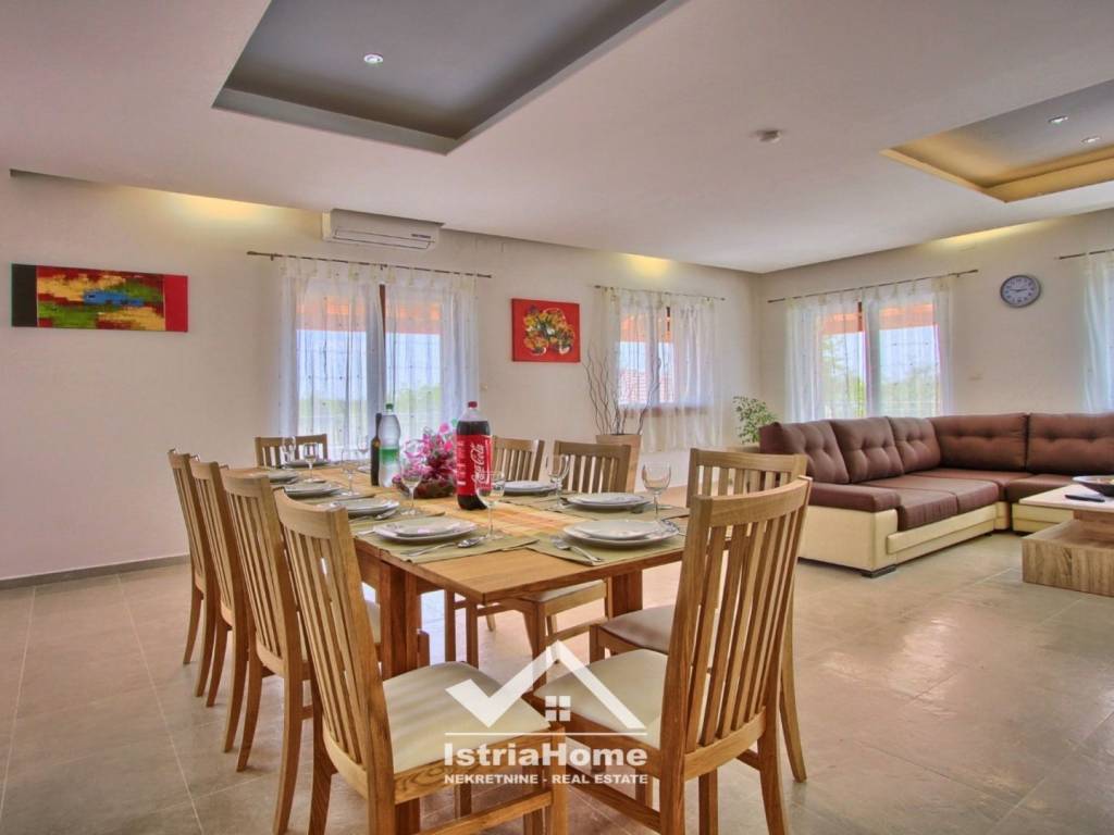 In the idyllic village of Štokovci, not far from the historic town of Svetvinčenat, there is an enchanting villa that offers an exceptional combination of peace and greenery, while also being close to the colorful cities of Pula, Poreč and Rovinj. This unique property is not only a house, but also an opportunity to take over a successful tourism business, with an impressive categorization of four stars.