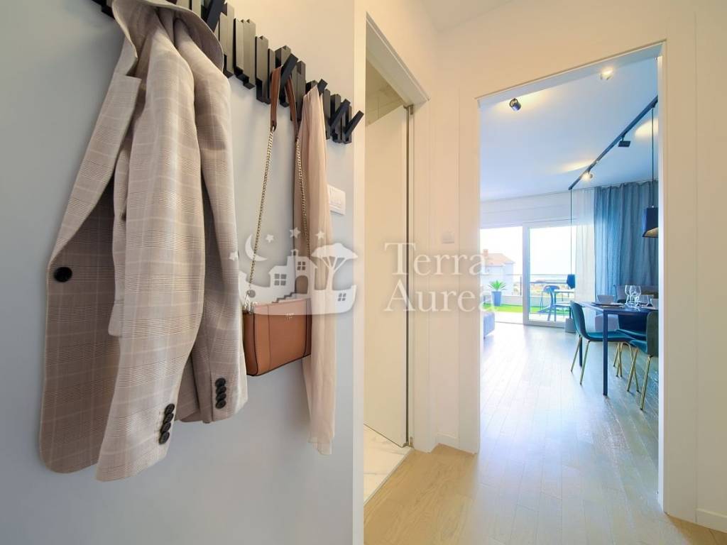 For sale is a modern, elegantly decorated apartment on the ground floor of a modern-looking building, located in a quiet and attractive area of the town of Krk.