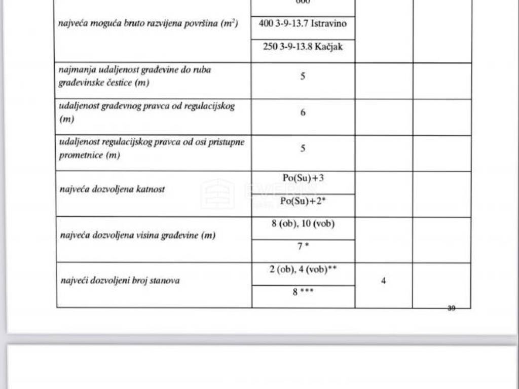 Najveća dozvoljena katnost: - Po (Su) +3 - Visina 8,0 m do vijenca za obiteljski kuću i 10 m za stambenu zgradu