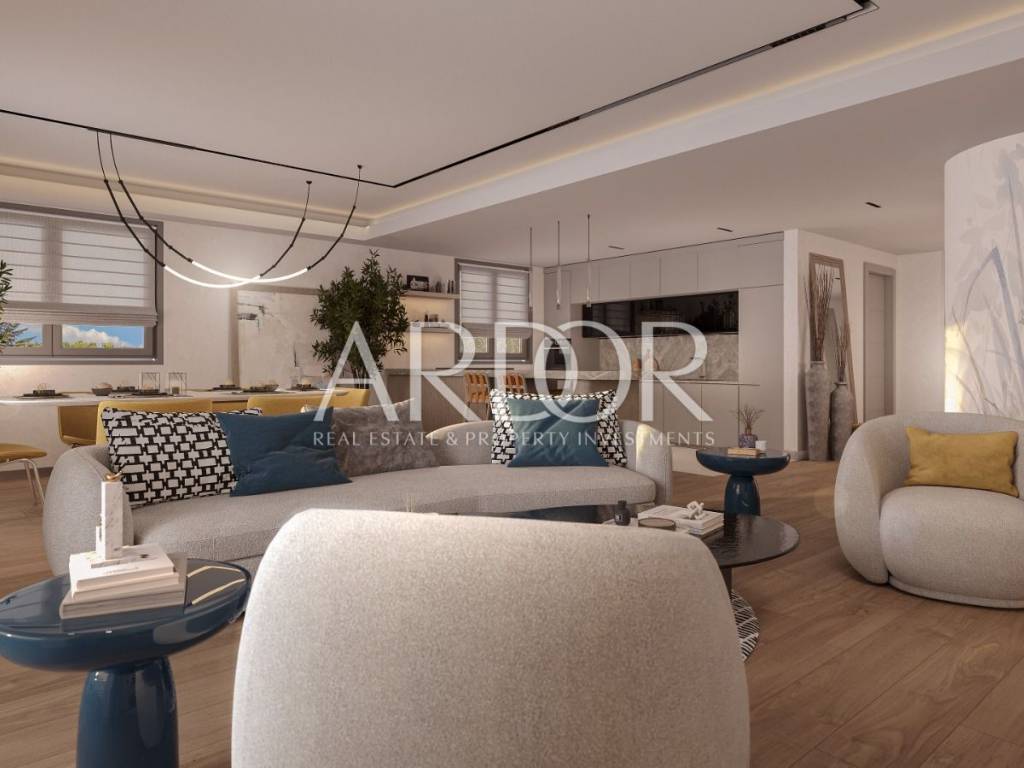 The apartments are equipped with heating and cooling systems with Daikin heat pumps, a fan coil system, all have underfloor heating, three-layer aluminum joinery with glass walls up to 7.5m wide. There are first-class parquet floors on the floors, and the bathrooms are equipped with high-quality Italian ceramics.
