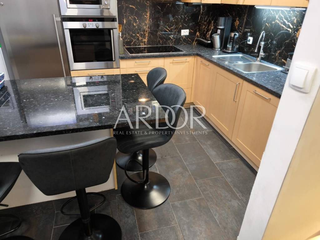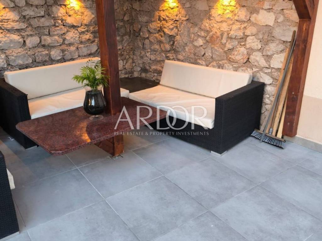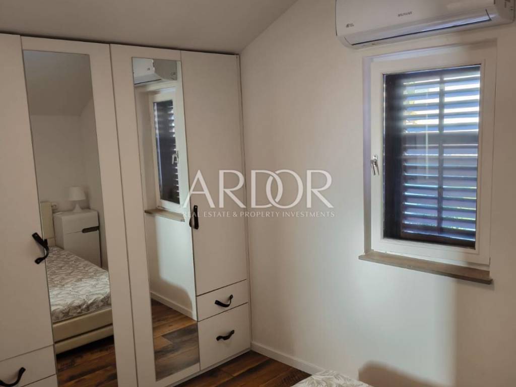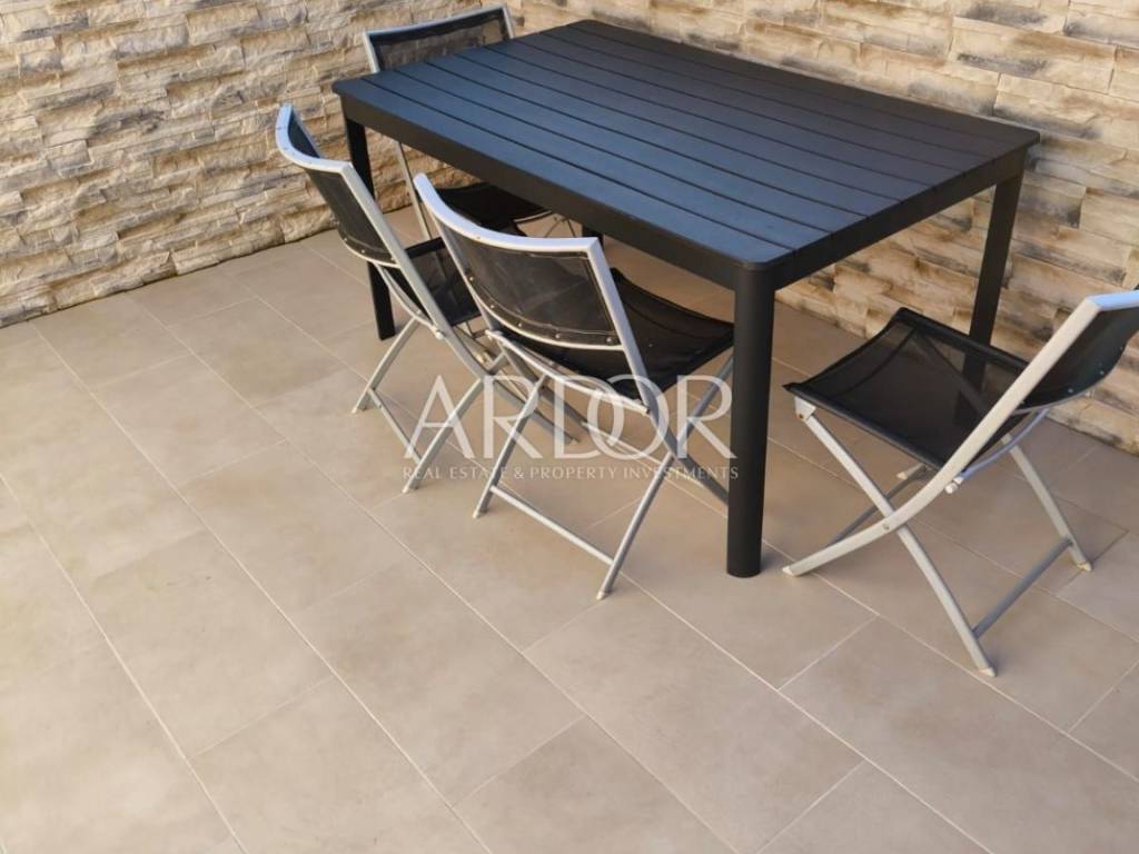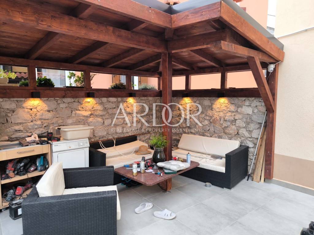 The surface of the house is 100 m² and consists of 3 bedrooms, 2 bathrooms and two separate toilets. The house is decorated and equipped to provide you with maximum comfort. On the first floor, there is a spacious kitchen connected to the living room, which leads to a spacious terrace of 50 m² equipped with a summer kitchen and a jacuzzi. The attic of the house is decorated with an additional intimate terrace protected from view and is the perfect place for morning coffee or evening relaxation. The house is located in a quiet and highly sought-after location. It is located near all the necessary amenities such as shops, restaurants, beaches, and cultural attractions. The house is equipped with underfloor heating and air conditioning in all rooms, which allows you a pleasant stay throughout the year.