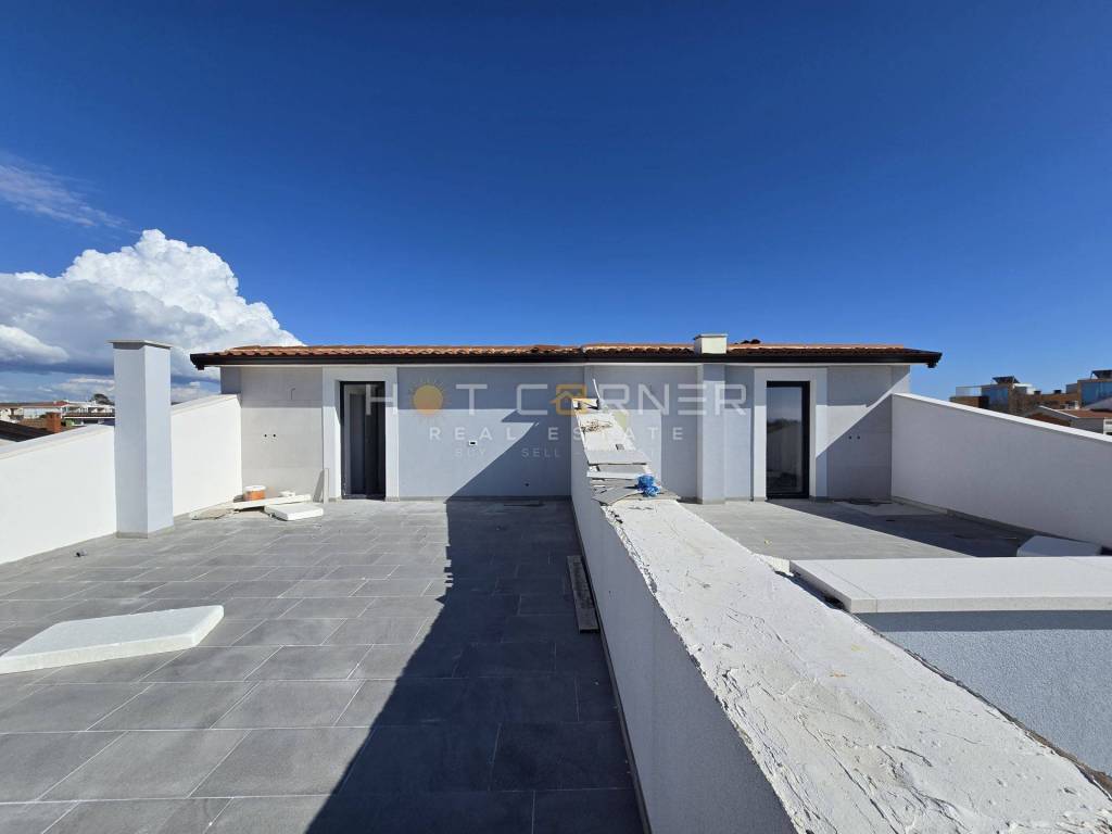 In the basement there are 2 bedrooms with private bathrooms, and a space for playing and a room for a possible sauna or other activities. On the ground floor there is 1 bedroom with a private bathroom, and a spacious living room and kitchen. On the 1st floor there are 2 bedrooms with their own bathrooms. On the 2nd floor or attic there is an open space for socializing, and a terrace of about 40 m2 with a view of Brijune and the Fažana watershed.