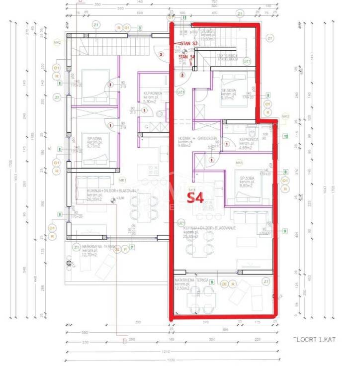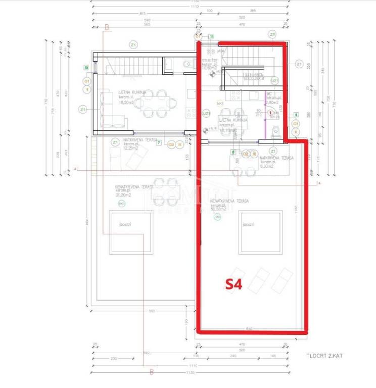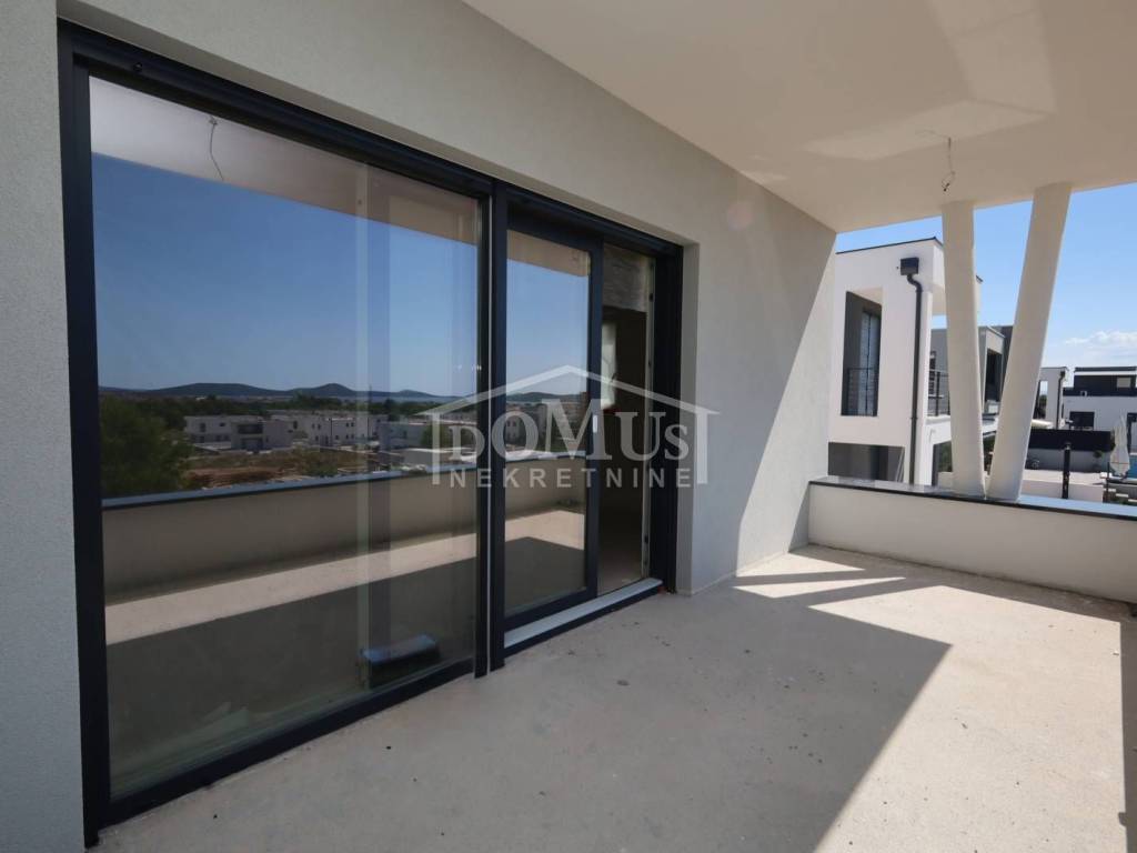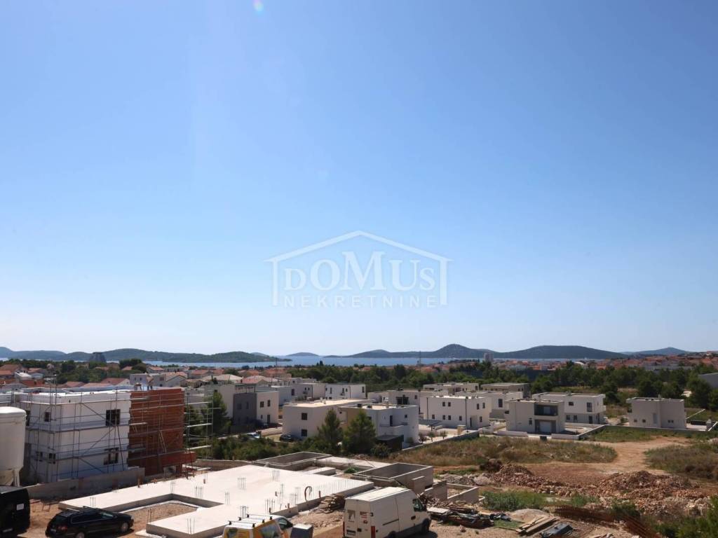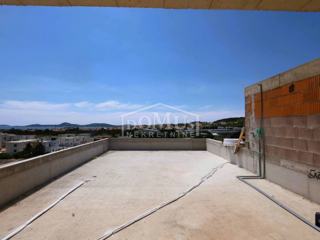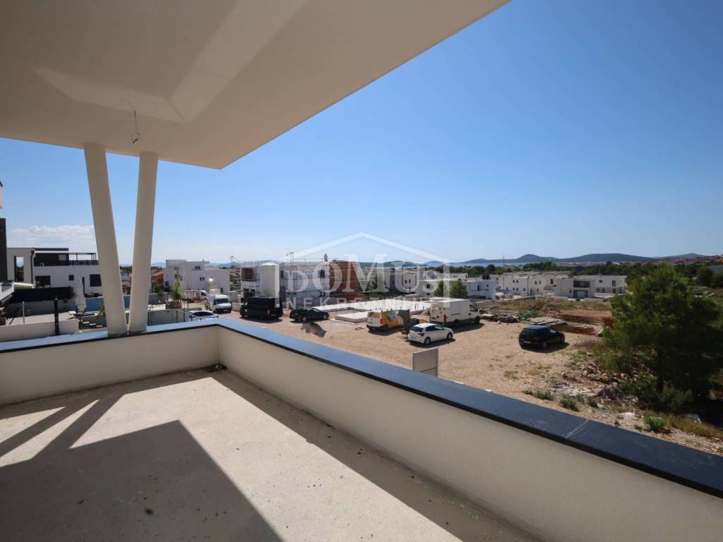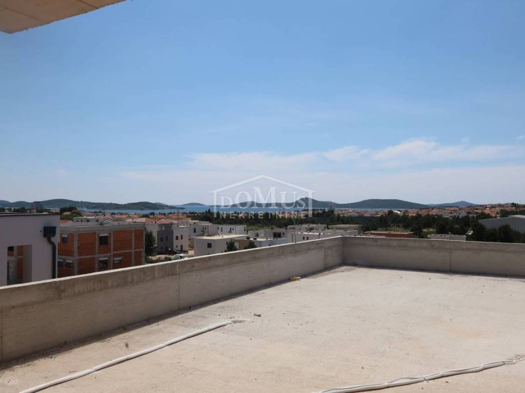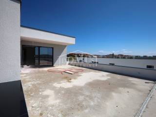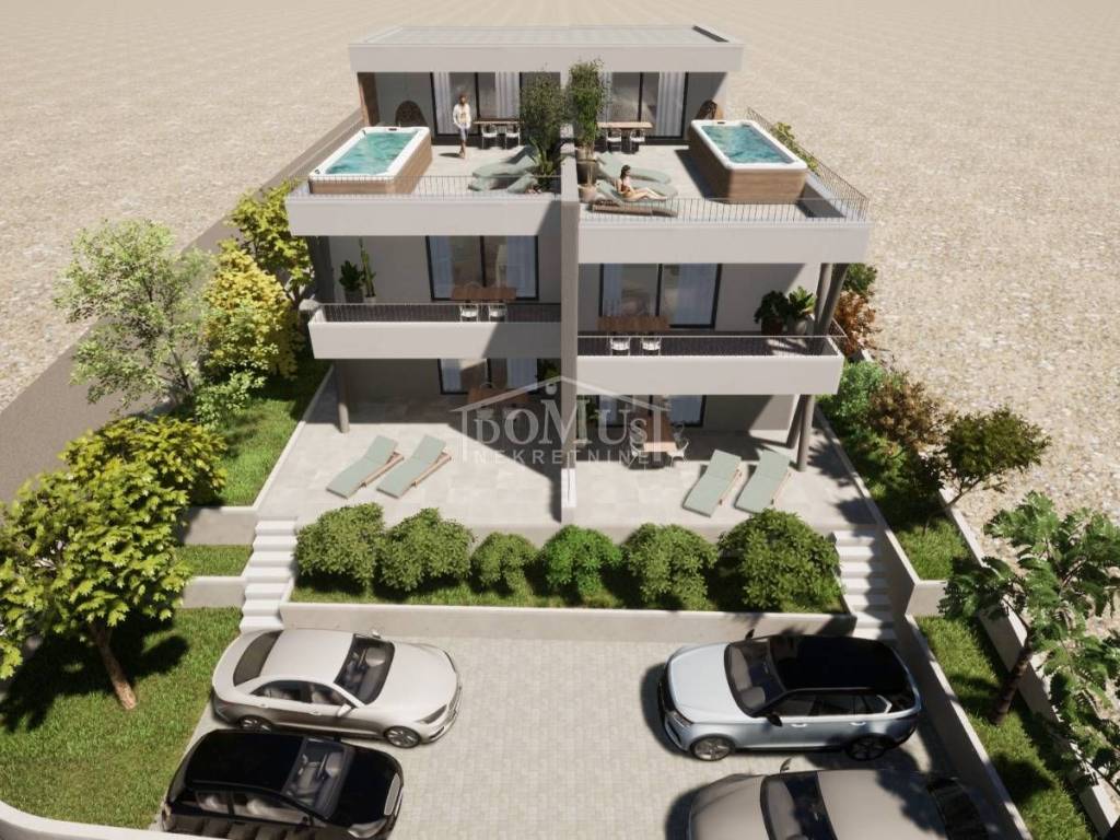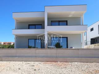 Newly built, in a quiet location, there is a comfortable two-bedroom apartment with a roof terrace and a sea view and parking. The apartment is located in a small residential building with a total of 4 apartments. It has a modern design and functional layout with a total of 99.57m2 of usable area, and consists of two bedrooms, a bathroom, a hallway and a spacious kitchen with a dining area and living room as a whole, from which there is an exit to a covered terrace of 12.50 m2. Internal stairs lead to the 2nd floor where there is a roof terrace of 61.10m2 and a summer kitchen with a toilet. The apartment is equipped with air conditioning (bedrooms and living room), underfloor water heating throughout the apartment, an electric stove "Valiant", PVC joinery with mosquito nets, security entrance doors, and high-quality ceramics and sanitary ware. The apartment has a parking space of 12.50m2. The apartment is located 2000m from the beach, and 1600m from the center.