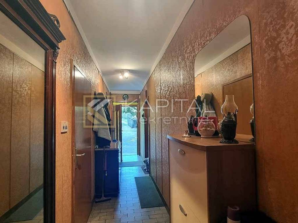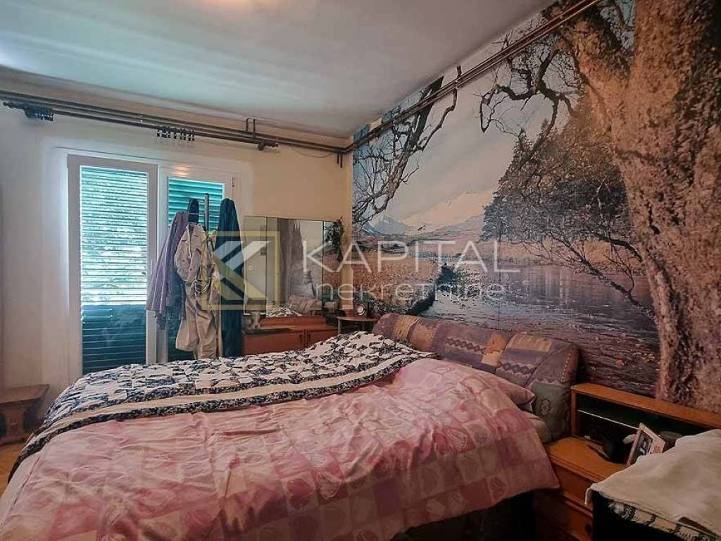 House with 2 apartments. In the basement, a tavern for socializing, a sanitary hub and two rooms. On the ground floor, a two-room apartment with a living room with access to the balcony and the yard. External stairs for a three-room apartment on the first floor with a living room. Nice view of Kvarner. At the beginning of the plot is a storage room of 18 m2. An apartment from Lovran to the center of Rijeka, 50-70 m2, on a lower floor or a building with an elevator can be considered. For all information, call 098/257-020